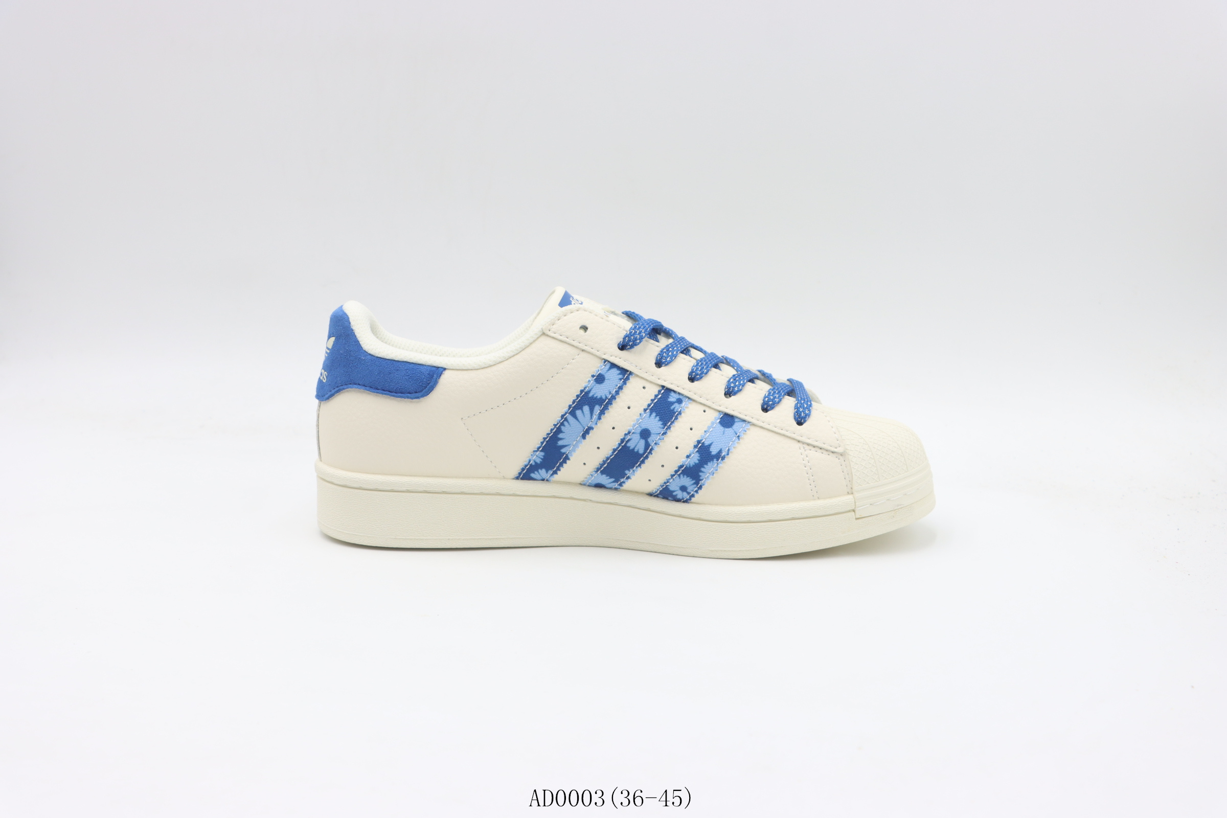 💰200 【公司级 贝壳头系列】阿迪达斯/Adidas 阿迪三叶草贝壳头板鞋 白蓝雏菊 货号:AD0003尺码:36 36.5 37 38 38.5 39 40 40.5 41 42 42.5 43 44 45 ❗️❗️❗️ 阿迪达斯AdidasSUPERSTAR贝壳头系列低帮百搭休闲运动板鞋