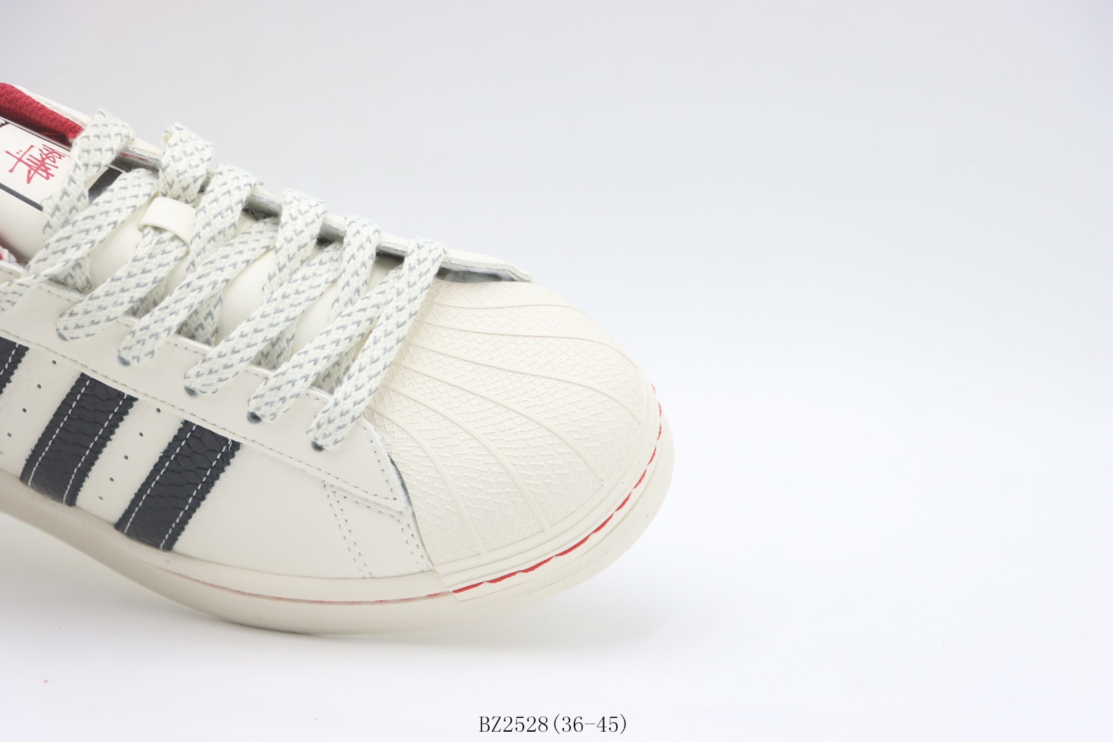 💰200 【公司级 贝壳头系列】阿迪达斯/Adidas 阿迪三叶草贝壳头板鞋 白黑红斯图西 货号:BZ2528尺码:36 36.5 37 38 38.5 39 40 40.5 41 42 42.5 43 44 45 ❗️❗️❗️ 阿迪达斯AdidasSUPERSTAR贝壳头系列低帮百搭休闲运动板鞋