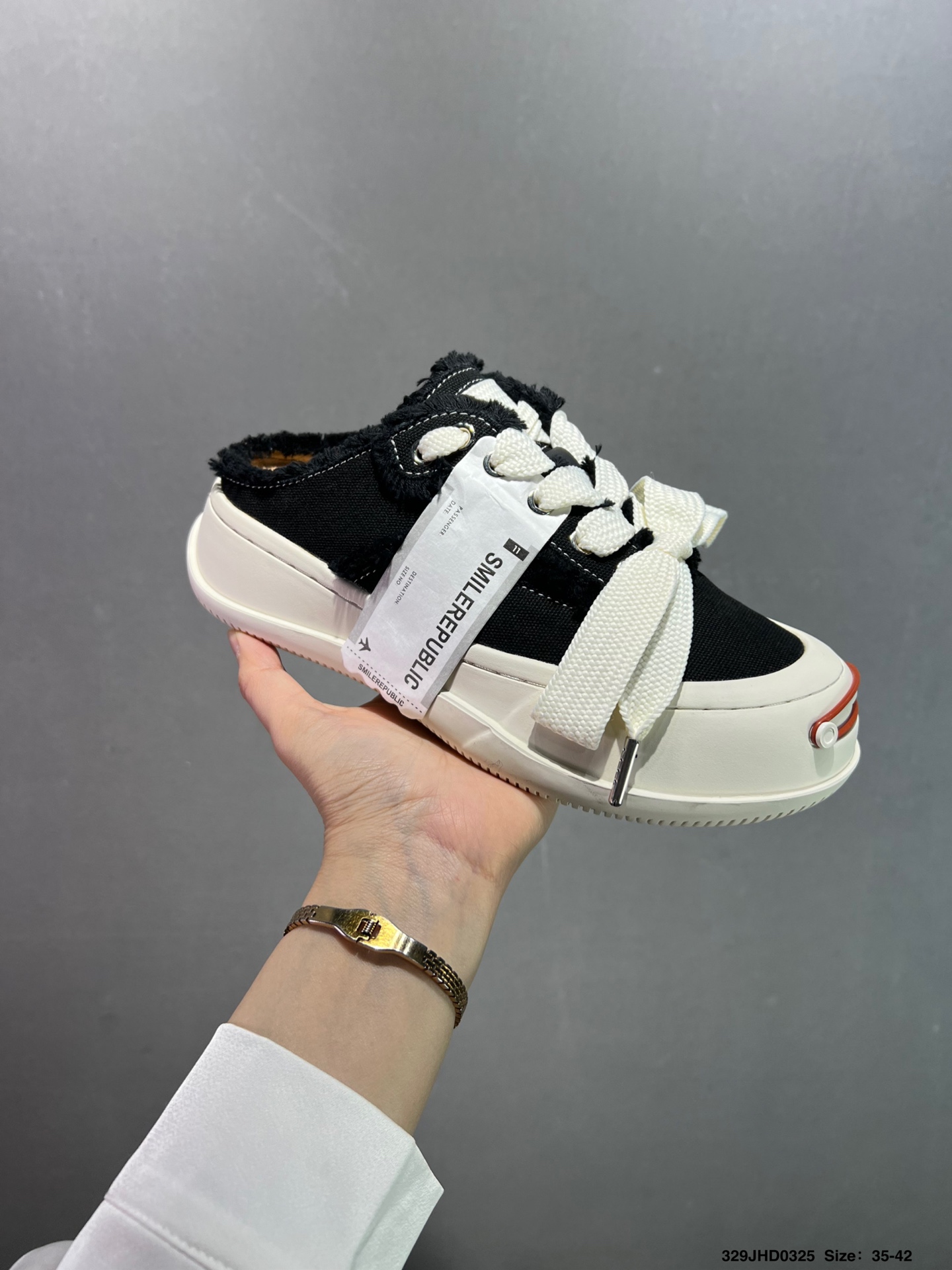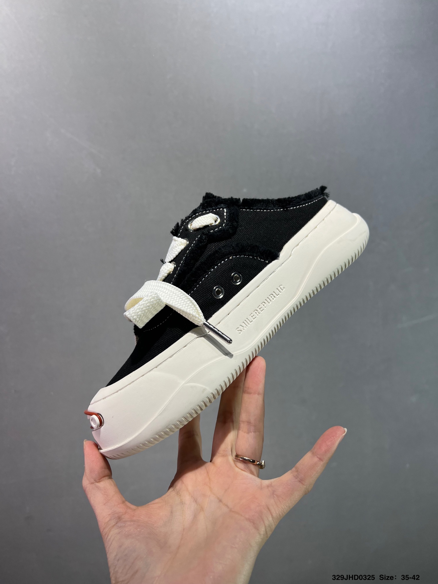 💰130 公司级✅采用原装定制高密度帆布革鞋面材质,超软水染牛皮内里/注塑成型鞋垫,4cm厘米外增高效果橡胶鞋底❗️徐璐,李晨,檀健次同款,新晋街头鞋履品牌SMILEREPUBLIC Canvas Mule Sneakers Low 松糕厚底增高低帮反系带一脚蹬乞丐风帆布露跟板鞋 类型:男女鞋 码数:35 36 37 38 39 40 41 42 43 44 ID:329JHD0325