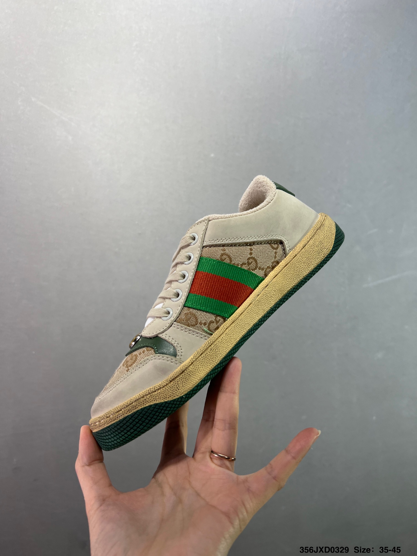 💰140 ✅倪妮.杨幂.鹿晗.吴宪华群星ins及小红书穿搭爆款🔥2021ss新色,经典高奢品牌GUCCI古驰 Tennis 1977 Print Sneaker帆布印花复古休闲运动板鞋“斜纹帆布黄油深绿红”606111 HVK20 9766. Size:35-45如图 编码:622JXD0329