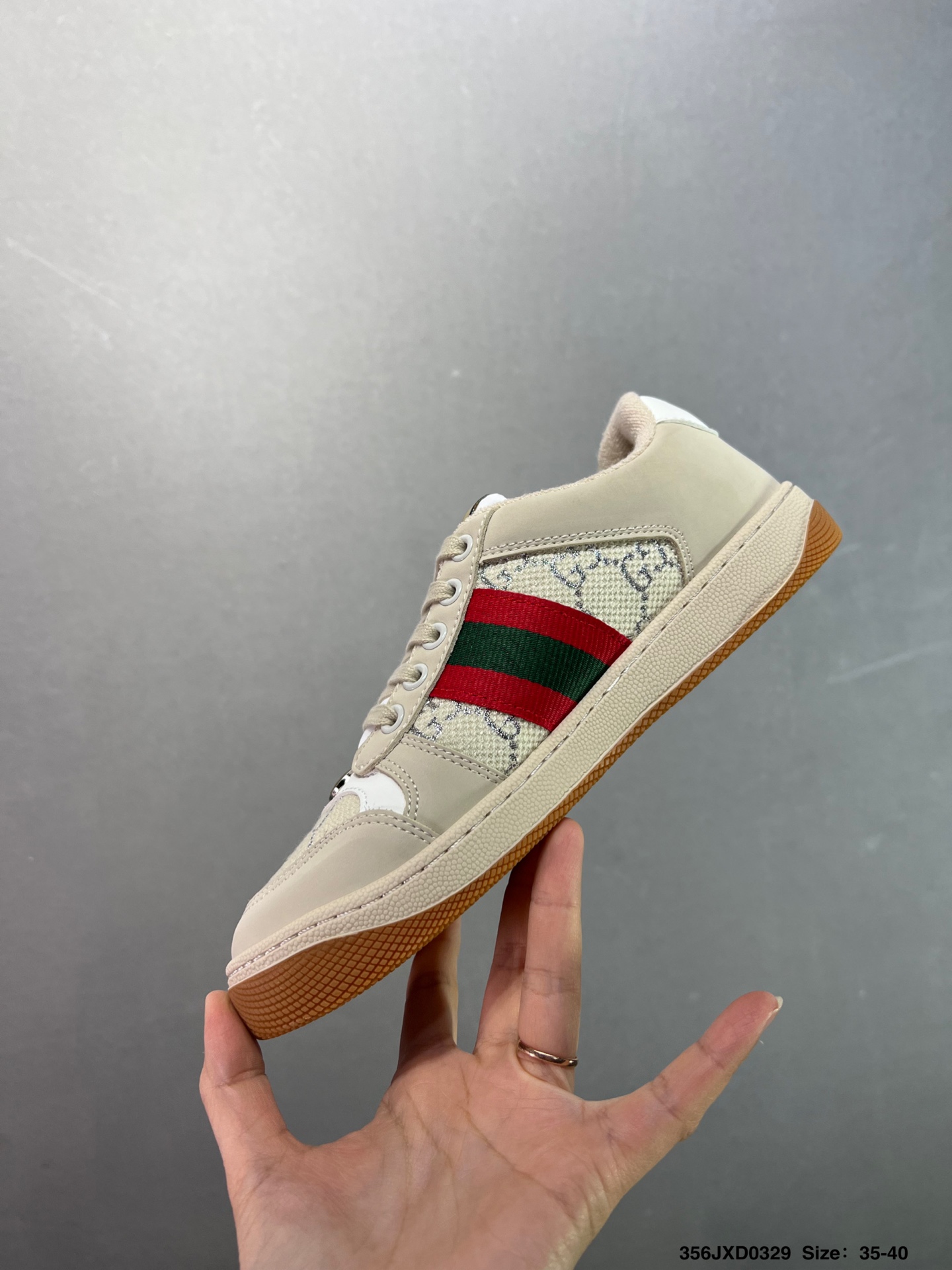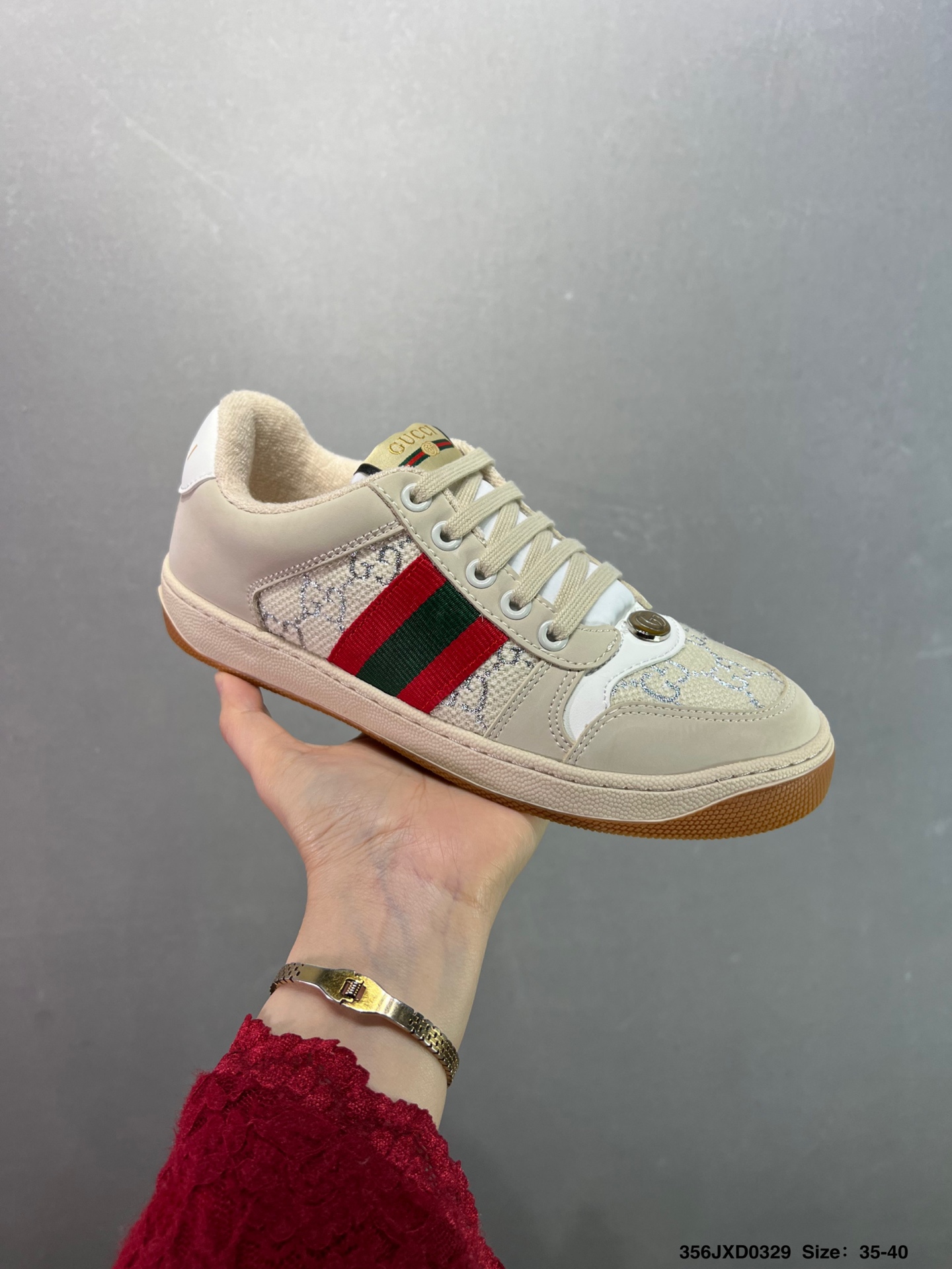 💰140 ✅倪妮.杨幂.鹿晗.吴宪华群星ins及小红书穿搭爆款🔥2021ss新色,经典高奢品牌GUCCI古驰 Tennis 1977 Print Sneaker帆布印花复古休闲运动板鞋“斜纹帆布黄油深绿红”606111 HVK20 9766. Size:35-45如图 编码:622JXD0329