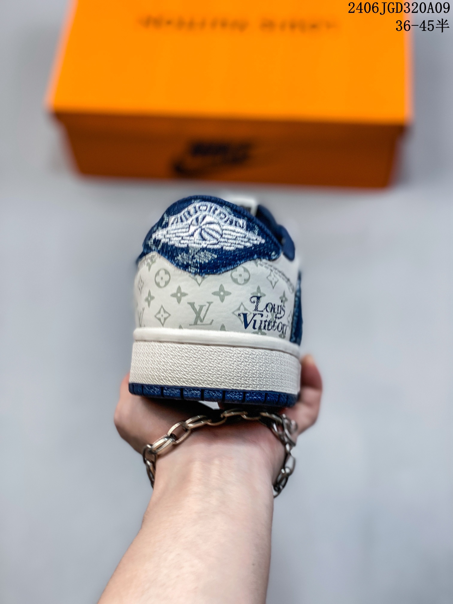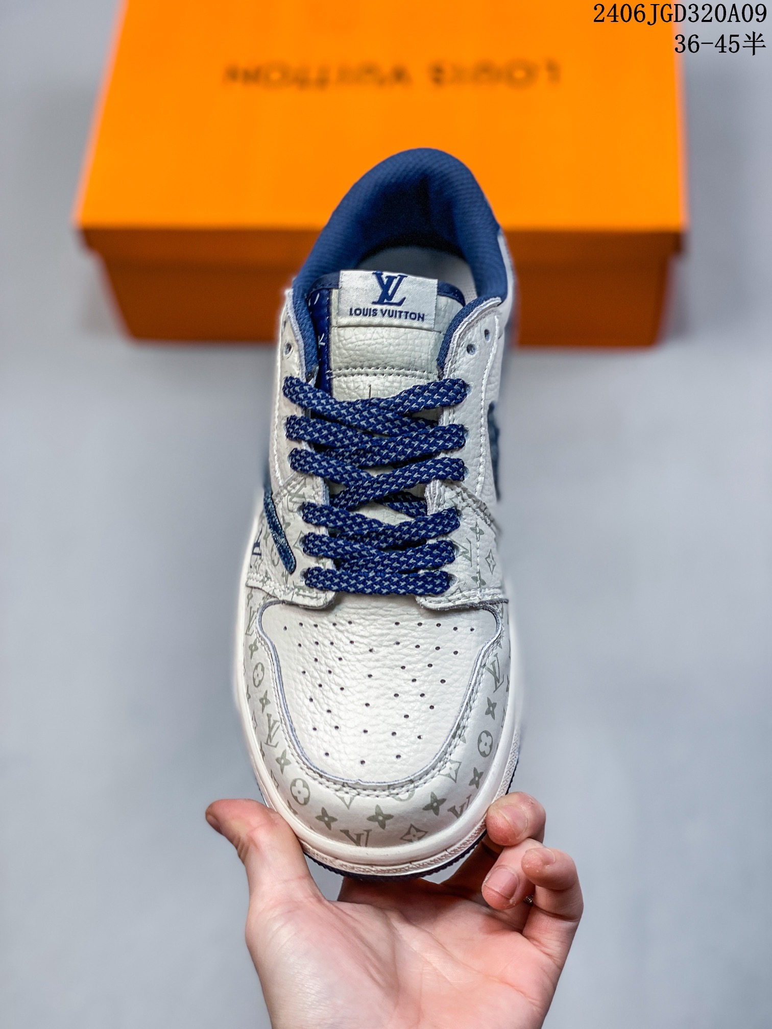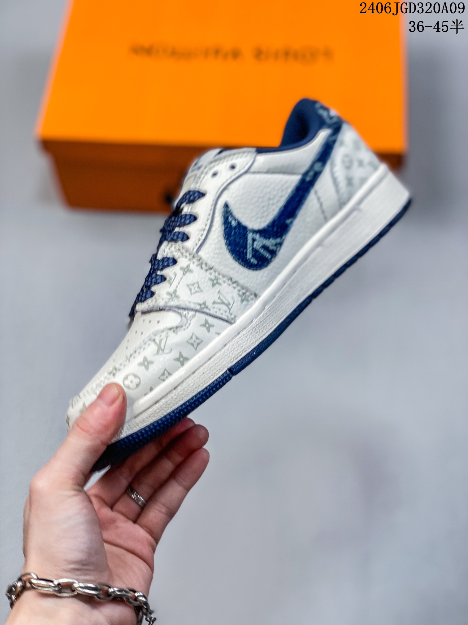💰120 当红嘻哈歌手特拉维斯·斯科特联乘路易威登Louis Vuitton x Travis Scott x Nike Air Jordan 1 Low OG SP"Damier Azur/Brown/LV Monogram"AJ1乔丹一代经典低帮文化百搭休闲运动篮球鞋“TS联名LV倒钩”。 类型:男女鞋 货号:LX1988-104 码数:36-45含半码 编码06JGD320A06