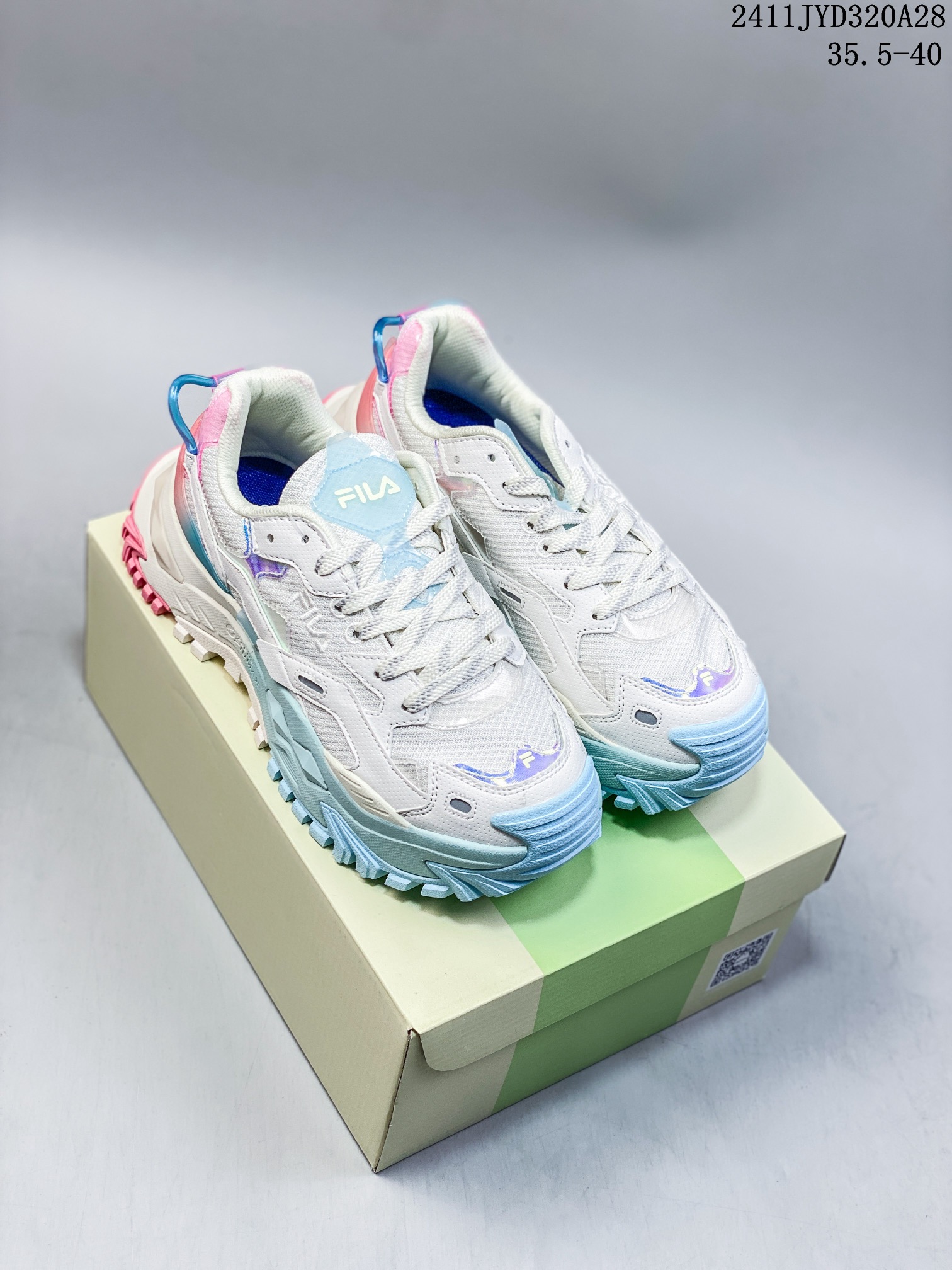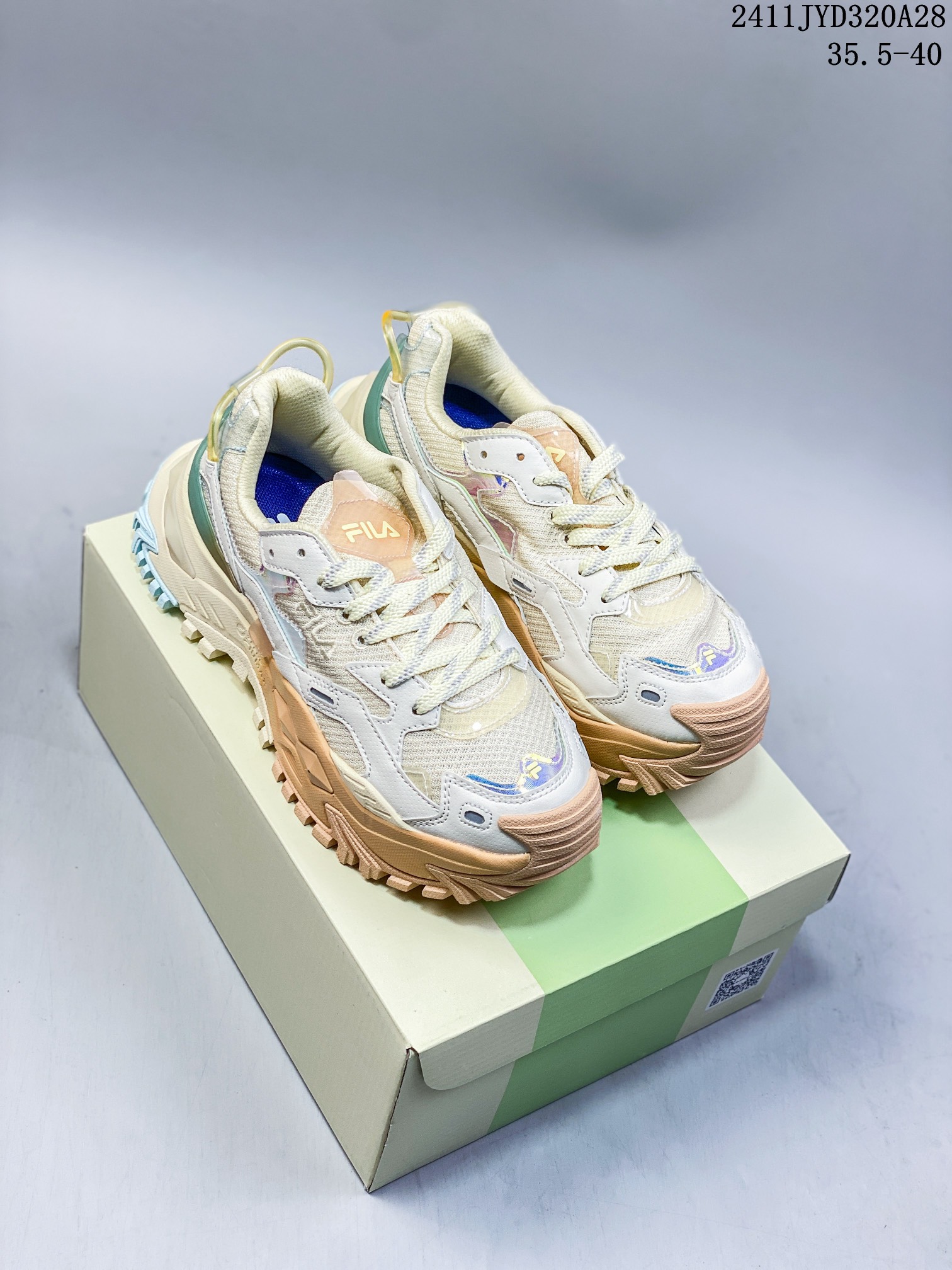 🈴💰140 ID:xnm Fila Fusion Bianco 硬糖系列斐乐老爹风增高厚底复古中性休闲运动慢跑鞋 采用牛剖皮饰片拼接透气网布材质#独立外发泡EVA科技中底+耐磨橡胶外底,4.5cm厘米外增高效果 糖果配色让夏日炎炎有点甜 欧阳娜娜,虞书欣同款 S6 货号:T12W321301 尺码:35 36 36.5 37.5 38 38.5 39 40