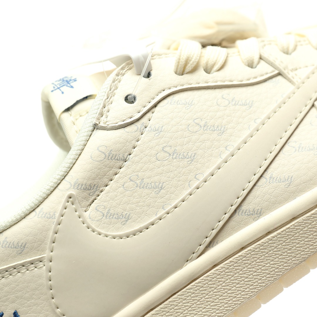 CX专供 毒版公司货 【乔丹】 【新品实拍篇】升级B版#男女鞋真标半码制#采用软质荔枝纹牛剖革鞋面材质#缜密拉帮中底布#鞋垫嵌EVA缓震物料及背胶#内置气垫及耐磨橡胶大底❗️创意定制三方联名配色,美国元祖街头潮牌-斯图西/Stussy x Travis Scott x Nike Air Jordan 1 Low OG"Stussy"AJ1乔丹一代经典低帮文化百搭休闲运动篮球鞋“TS联名米白宝蓝印面斯图西倒钩”LJ5188-013 尺码:36 36.5 37.5 38 38.5 39 40 40.5 41 42 42.5 43 44 44.5 45