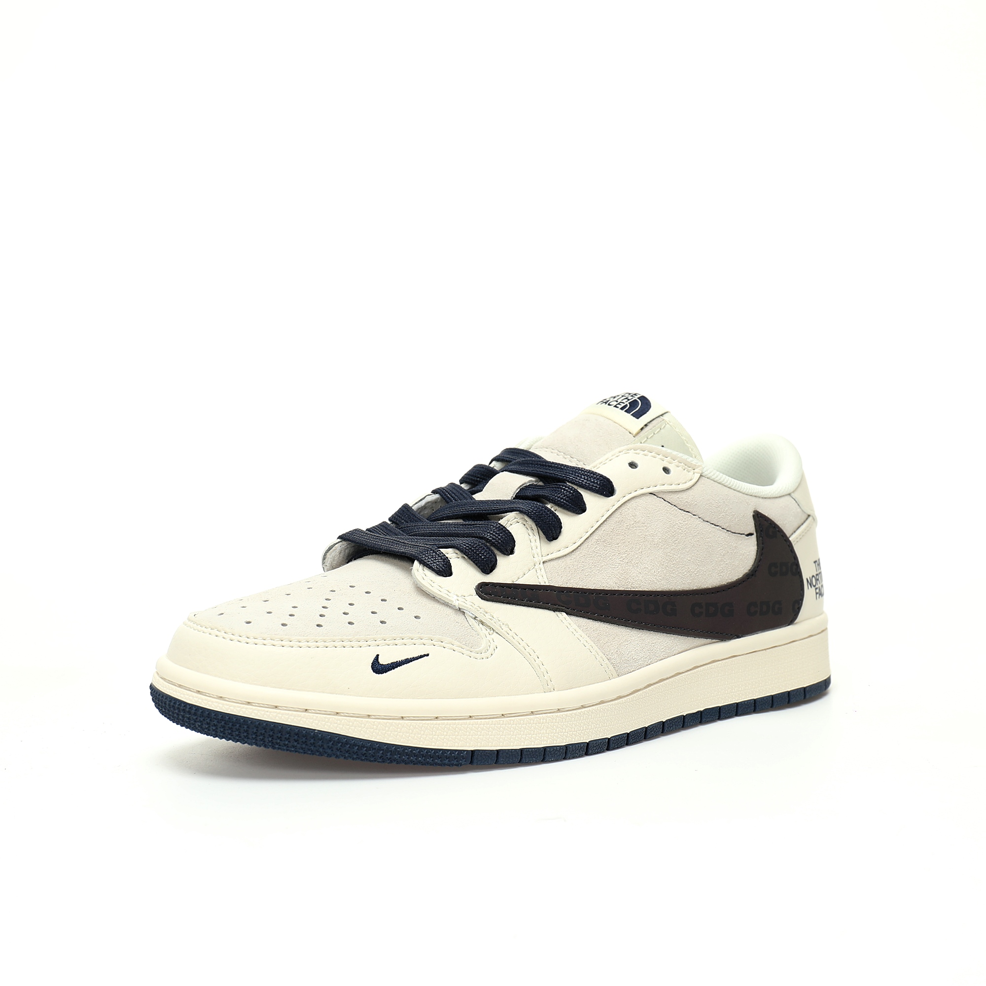 CX专供 毒版公司货 【乔1】 【新品实拍篇】升级B版#男女鞋真标半码制#采用软质荔枝纹牛剖革组合猪巴革鞋面材质#缜密拉帮中底布#鞋垫嵌EVA缓震物料及背胶#内置气垫及耐磨橡胶大底❗️创意定制三方联名配色,著名户外品牌·北面/The North Face x CDG x Travis Scott x Nike Air Jordan 1 Low OG"Comme des Garcons"AJ1乔丹一代经典低帮文化百搭休闲运动篮球鞋“TS联名米白藏蓝镭射北面CDG倒钩”XY2688-110 尺码:36 36.5 37.5 38 38.5 39 40 40.5 41 42 42.5 43 44 44.5 45