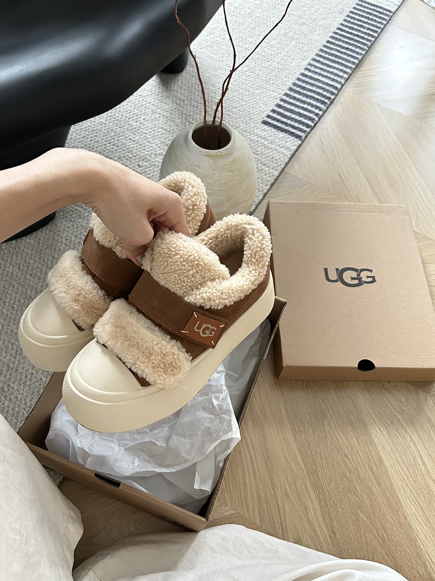 细节图 . . . . 🔥双11预热特惠🔥CX专供 独家纯原 【UGG】原价xx 卷毛面包魔术贴 🔥ugg新款面包卷毛魔术贴,牛皮羊毛🦙设计,轻便百搭,萌妹的首选,小红书主推款,穿搭方便 颜色:栗色 码数:35 36 37 38 39 40