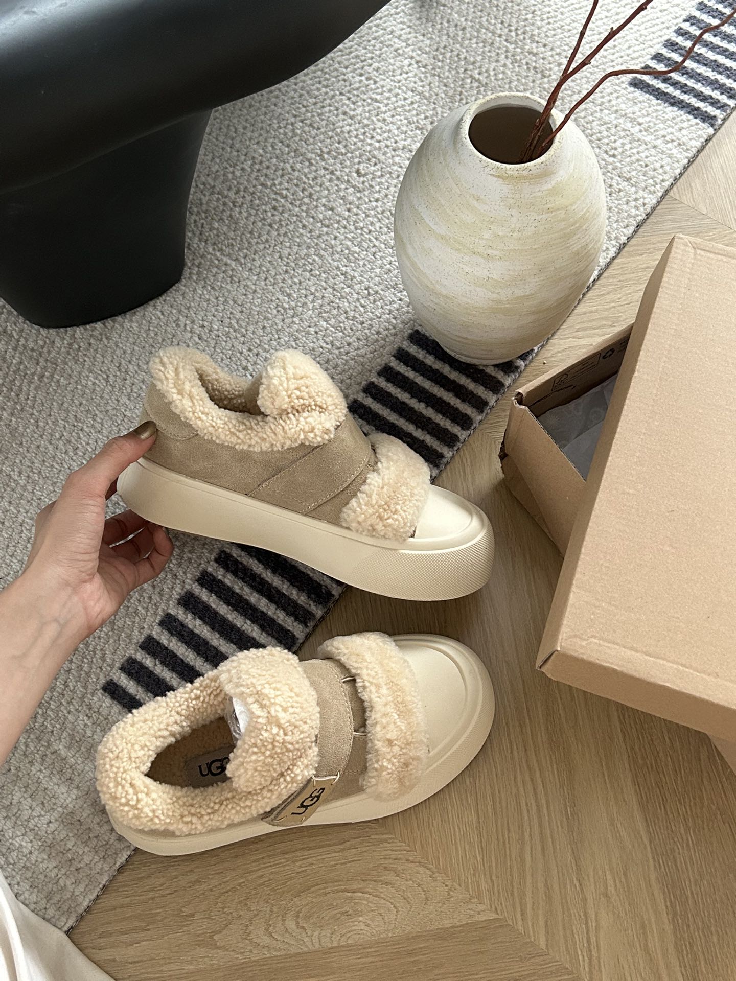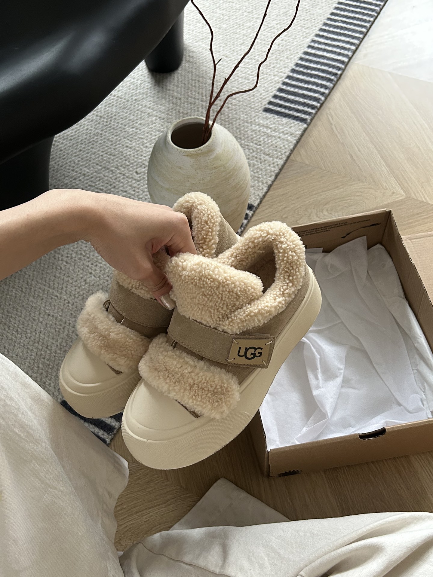 细节图 . . . . 🔥双11预热特惠🔥CX专供 独家纯原 【UGG】原价xx 卷毛面包魔术贴 🔥ugg新款面包卷毛魔术贴,牛皮羊毛🦙设计,轻便百搭,萌妹的首选,小红书主推款,穿搭方便 颜色:沙色。 码数:35 36 37 38 39 40