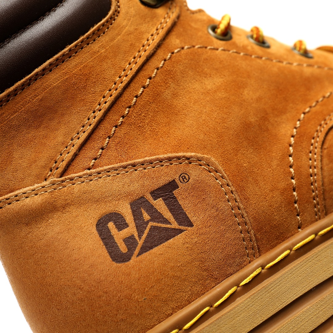 细节图 . . . . CX专供 独家纯原 【CAT】 【新品实拍篇】男鞋(偏大一码!!)广东中山代工厂原产楦型#出口外贸订单#采用丝光猪巴革鞋面材质#轻量橡胶大底#正确原盒包装吊牌#完全还原ZP工艺❗️硬汉推土机品牌/卡特CAT Camel Miel Raz Mid 米尔·拉兹系列中帮男士系带百搭工装机车休闲马丁鞋“擦色麂皮麦黄暗棕”P726536 尺码:39 40 41 42 43 44(偏大一码!!)