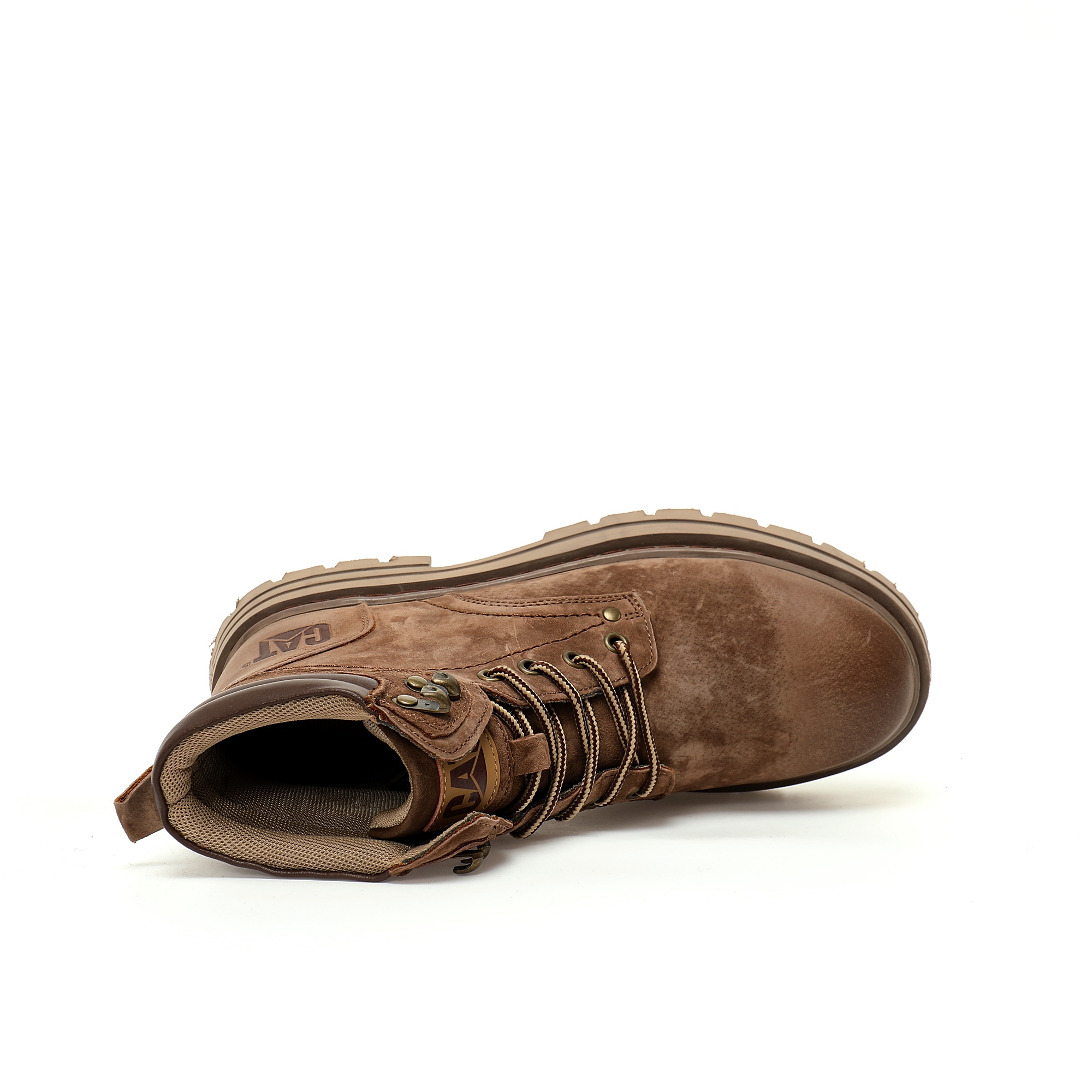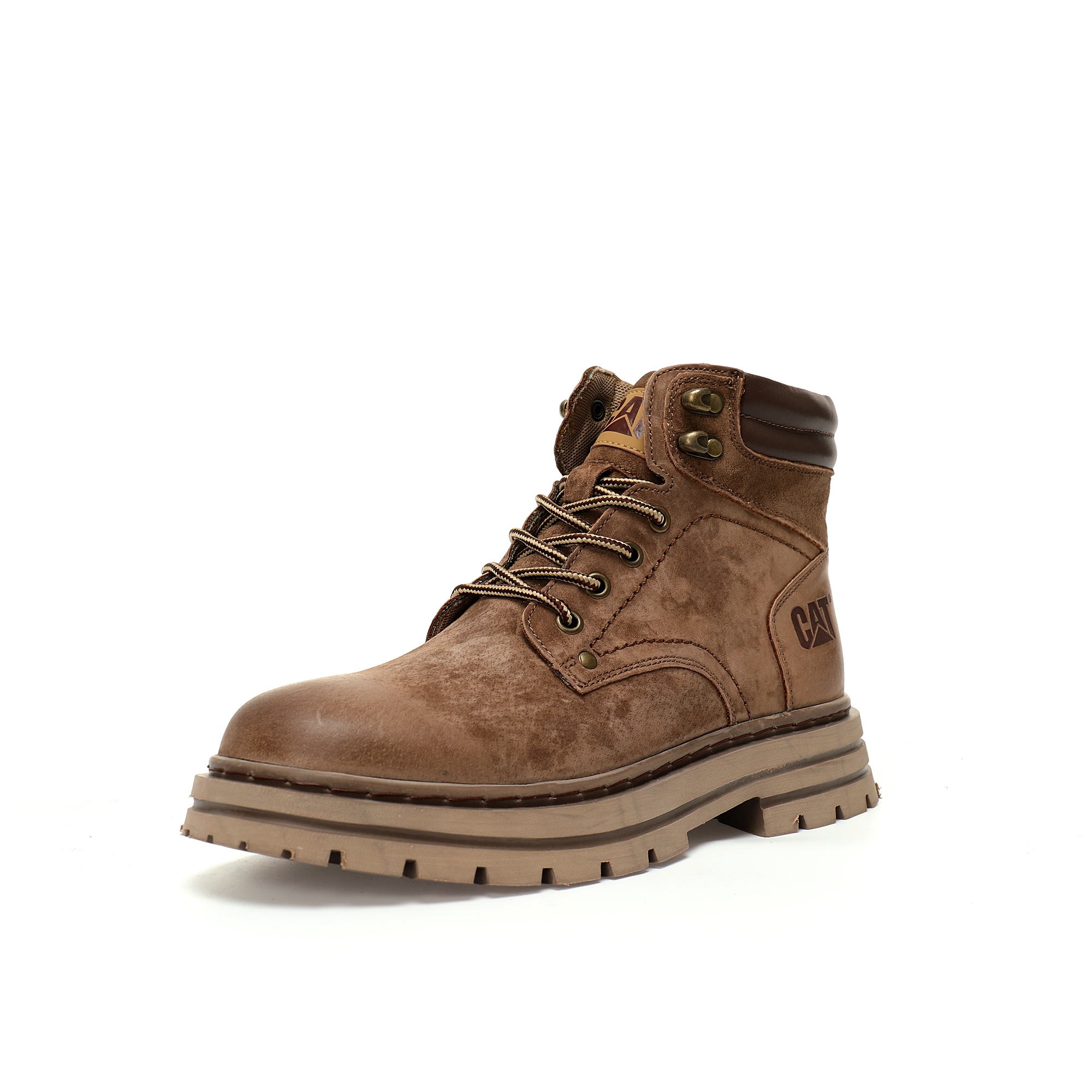CX专供 独家纯原 【CAT】 【新品实拍篇】男鞋(偏大一码!!)广东中山代工厂原产楦型#出口外贸订单#采用丝光猪巴革鞋面材质#轻量橡胶大底#正确原盒包装吊牌#完全还原ZP工艺❗️硬汉推土机品牌/卡特CAT Camel Miel Raz Mid 米尔·拉兹系列中帮男士系带百搭工装机车休闲马丁鞋“擦色麂皮咖啡棕”P726536 尺码:39 40 41 42 43 44(偏大一码!!)