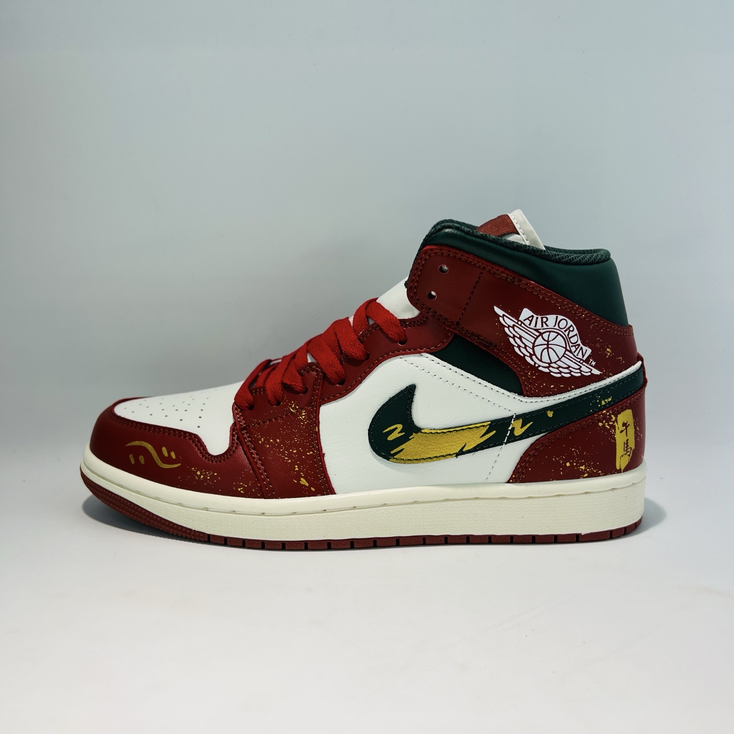 BL21# 【定制球鞋】Jordan Air Jordan 1 午马之年 新中式 国风 马年限定 新春 耐磨 中帮 复古篮球鞋 男女同款 白红色 货号:DQ8426-105(Team144-午马之年) 码数:36-46(带半码)