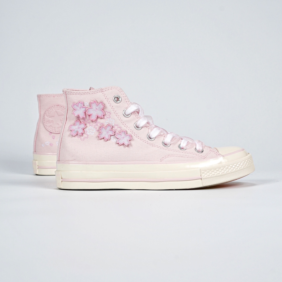 大货出 匡威CHUCK 70S春季新款樱花刺绣系列 匡威你这次真的美到犯规了! 花开春日,更添浪漫🌸🌸🌸 充🈵️梦幻氛围的粉白配色 我的少女心泛滥了!! 精致花朵🌸绽放在鞋面上 鞋面刺绣小樱花🌸鞋内侧小花瓣 半透明水晶底小樱花好好看哇 精致花朵🌸绽放在鞋面上 欧根纱鞋带系住春日浪漫🎀 太仙噜~ 穿这双匡威一起去花海吧🌸 春夏搭配小裙子无敌好看! 粉色高帮 🏷️A06221C 粉色低帮 🏷️A06222C 尺码:35 36 36.5 37 37.5 38 39 39.5 40