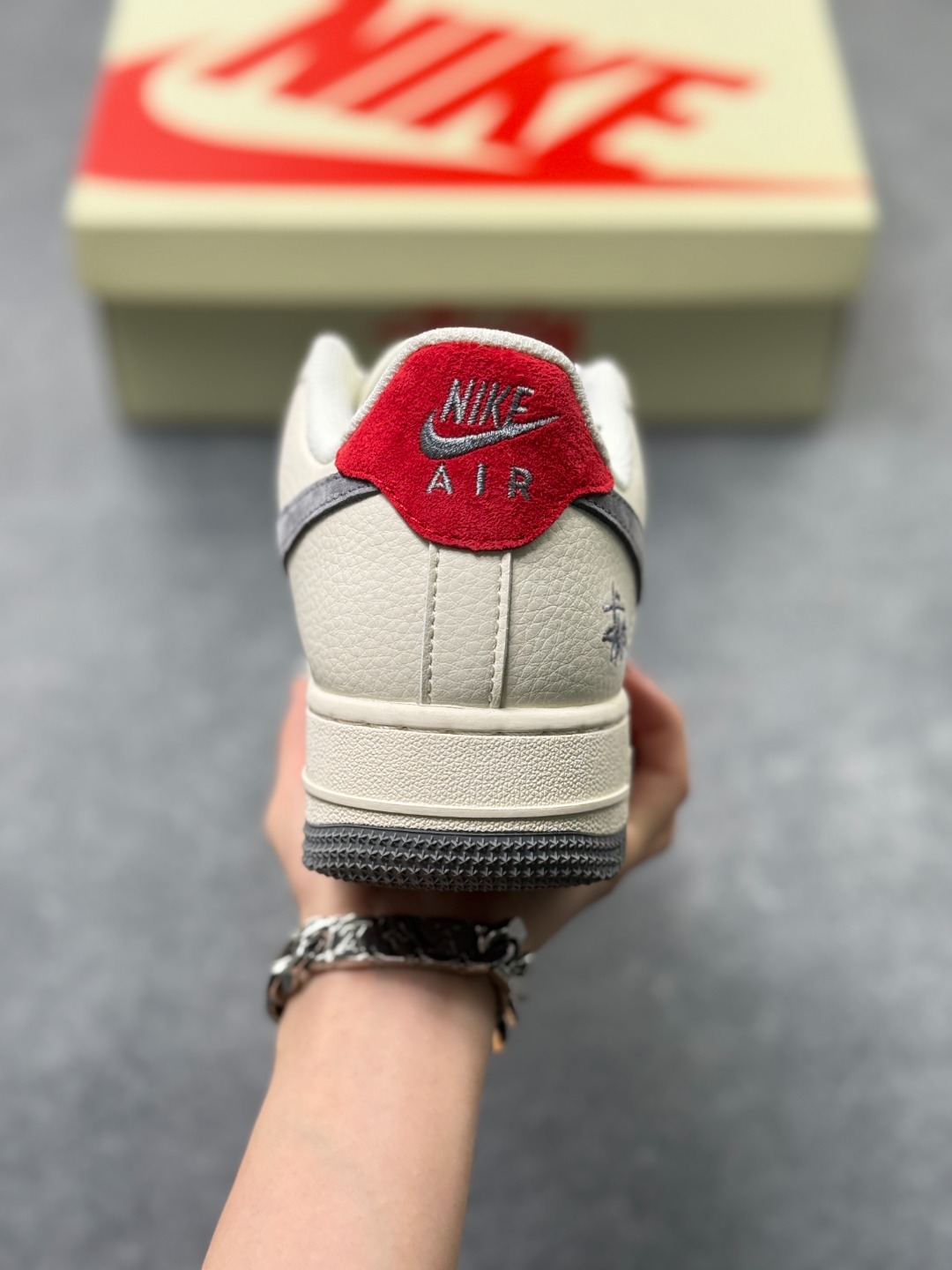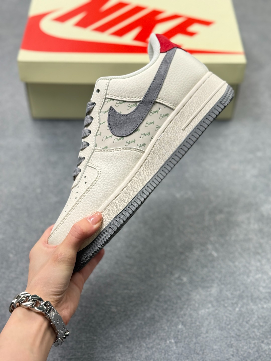 💰210 Nk Air Force 1‘07 Low 斯图西联名-英文米灰红 空军一号低帮休闲板鞋 XZ3318-567 #原楦头原纸板 原装鞋盒 定制五金配件 内置全掌气垫 原厂鞋底 尺码:36 36.5 37.5 38 38.5 39 40 40.5 41 42 42.5 43 44 44.5 45