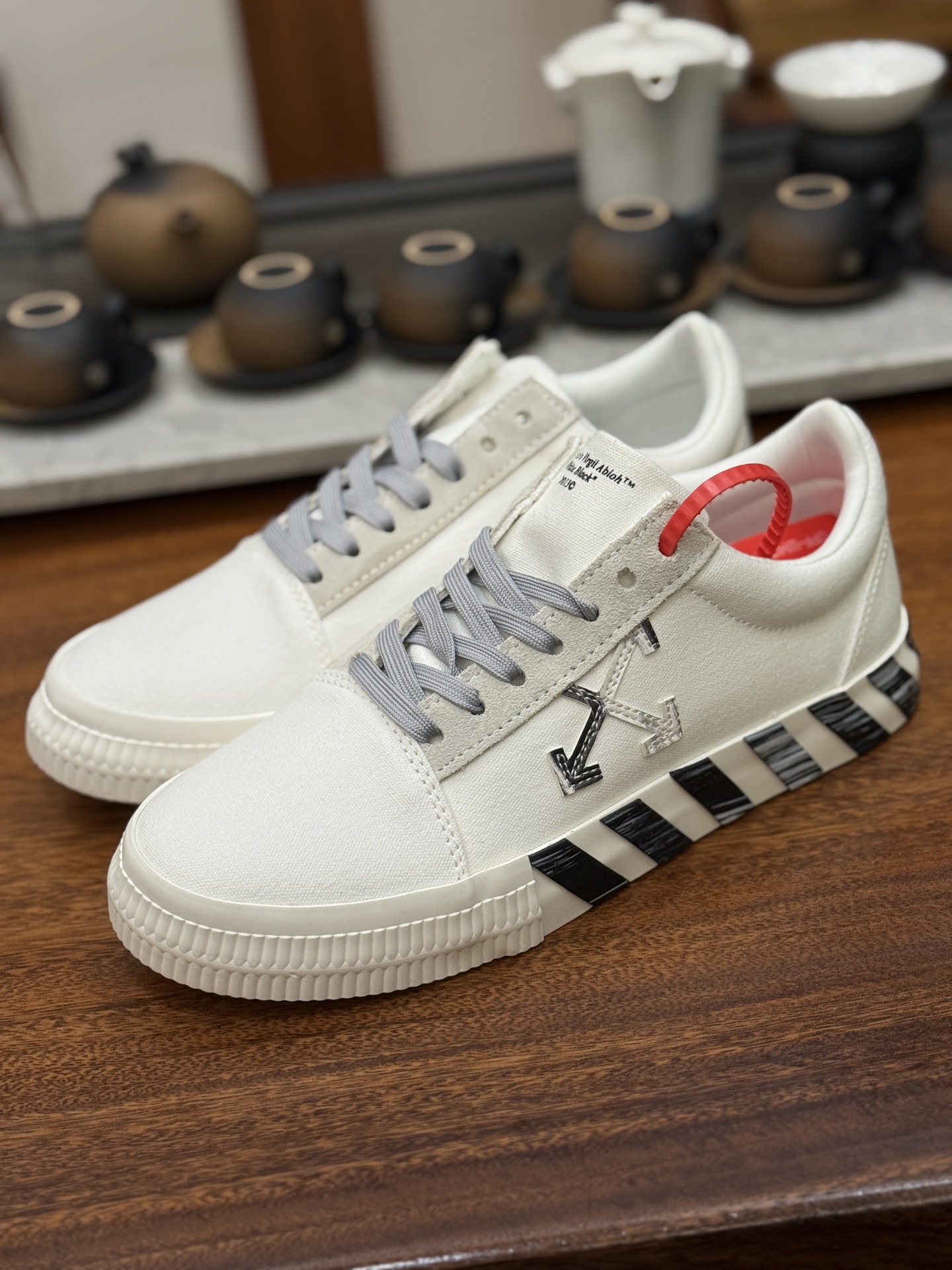 Off-White c/o Virgil Abloh Vulc Low Top 箭头低帮硫化帆布板鞋 尺码:36 37 38 39 40 41 42 43 44 45 46 47 Off-White 近日才发布其春夏新款鞋履,紧跟着就推出全新秋冬鞋款。此番带来的是一系列“ Off-Court ”运动鞋,其中除了基础的黑、白色 Vulc Low-Top 还有一双充满街头韵味的棋盘格元素,亮点其实在鞋内侧的橙色瓶贴以及鞋带头的橙色细节处理。该品牌标志性的箭头标志,防盗扣和鞋带的设计以及鞋后跟的字样也极具“THE TEN”系列的影子。