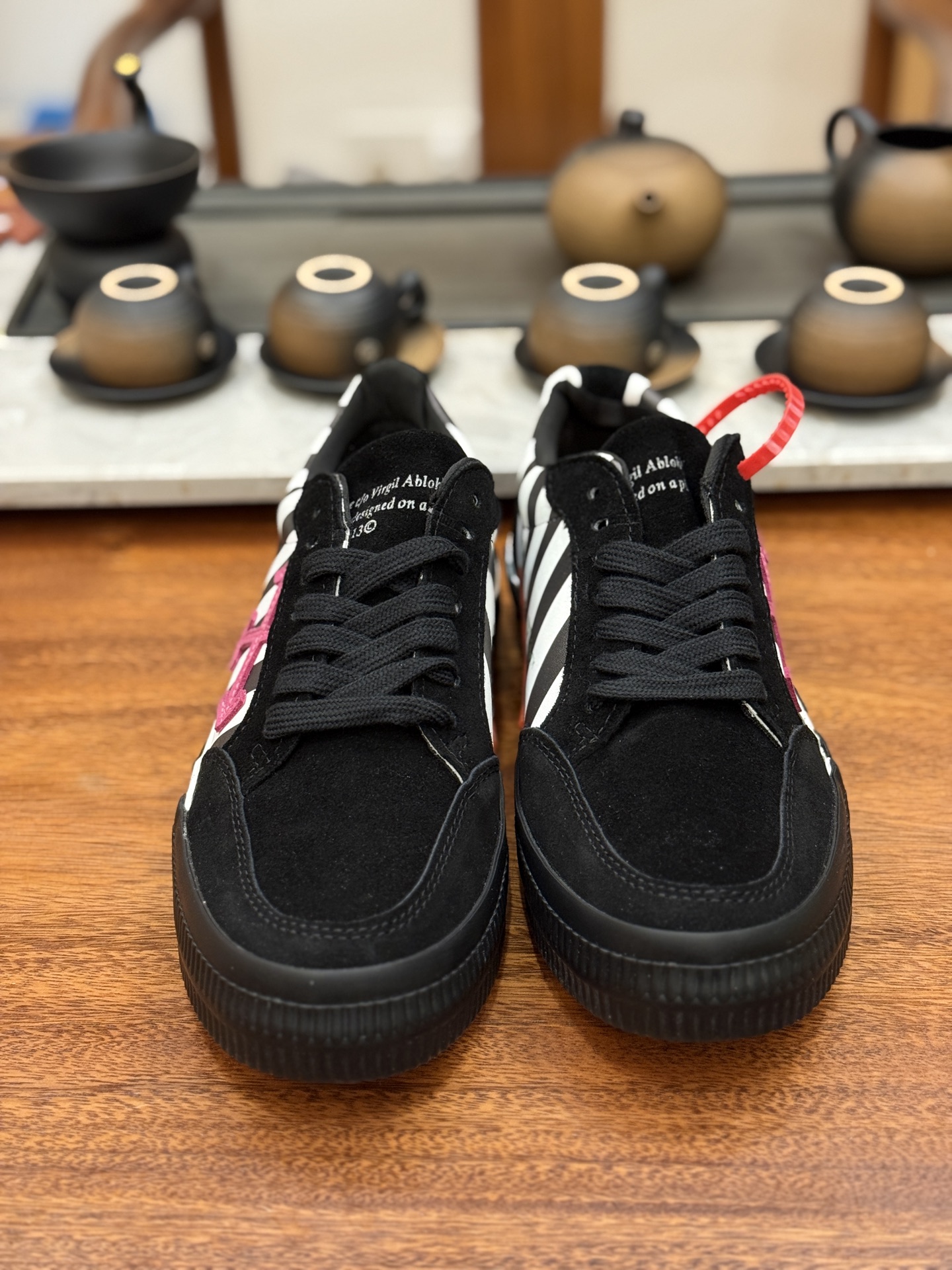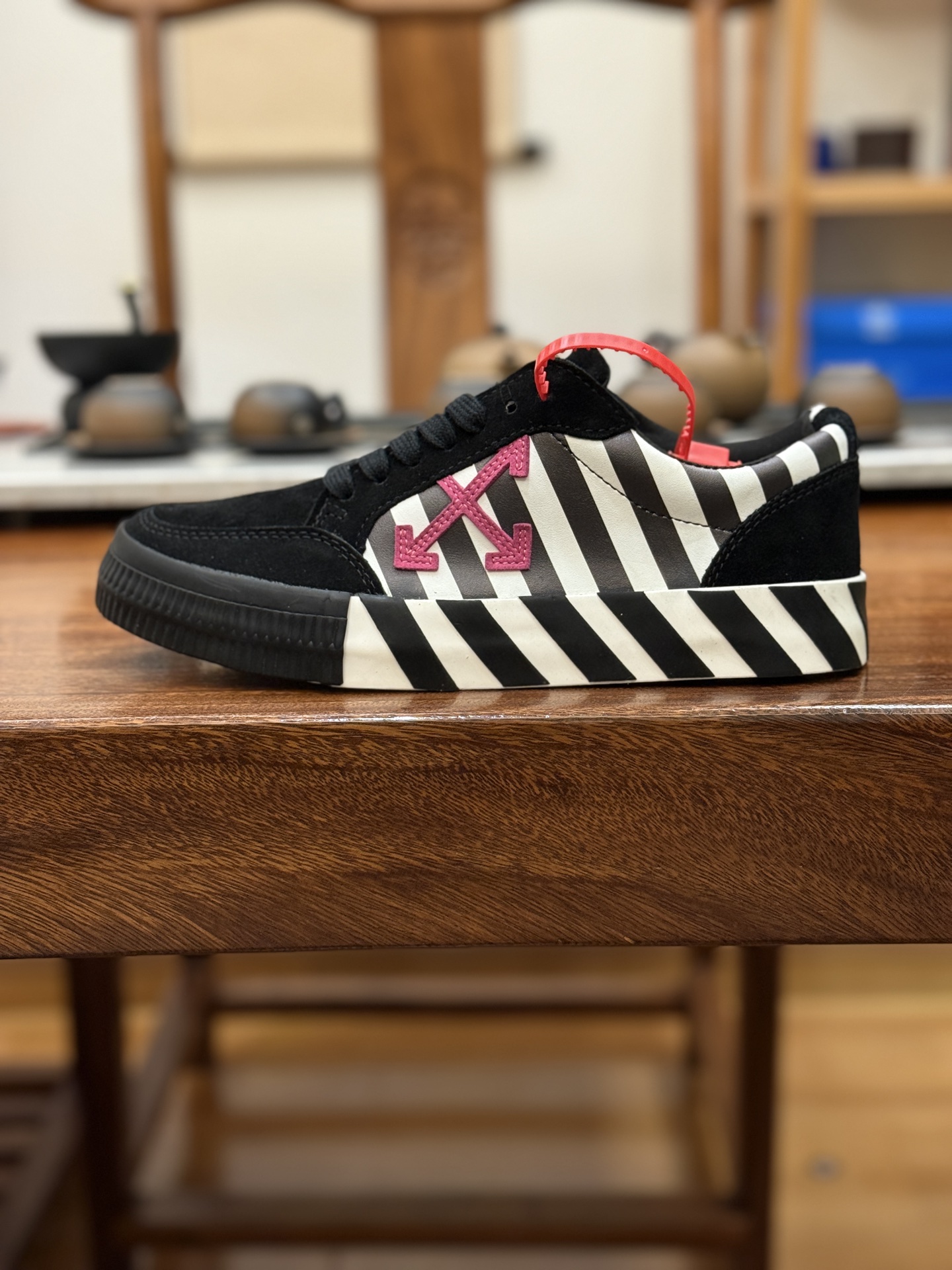 Off-White c/o Virgil Abloh Vulc Low Top 箭头低帮硫化帆布板鞋 尺码:36 37 38 39 40 41 42 43 44 45 46 47 Off-White 近日才发布其春夏新款鞋履,紧跟着就推出全新秋冬鞋款。此番带来的是一系列“ Off-Court ”运动鞋,其中除了基础的黑、白色 Vulc Low-Top 还有一双充满街头韵味的棋盘格元素,亮点其实在鞋内侧的橙色瓶贴以及鞋带头的橙色细节处理。该品牌标志性的箭头标志,防盗扣和鞋带的设计以及鞋后跟的字样也极具“THE TEN”系列的影子。