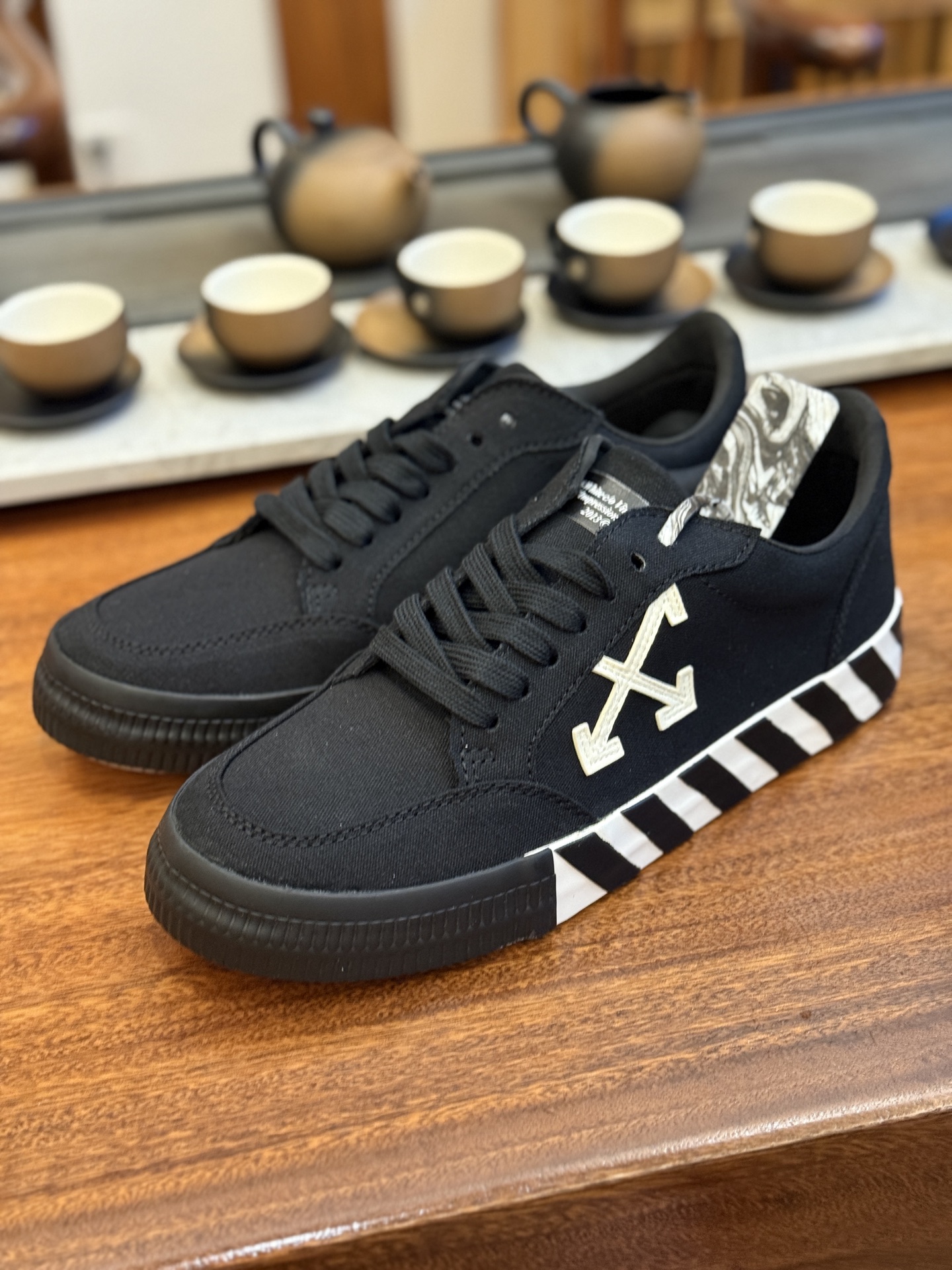 Off-White c/o Virgil Abloh Vulc Low Top 箭头低帮硫化帆布板鞋 尺码:36 37 38 39 40 41 42 43 44 45 46 47 Off-White 近日才发布其春夏新款鞋履,紧跟着就推出全新秋冬鞋款。此番带来的是一系列“ Off-Court ”运动鞋,其中除了基础的黑、白色 Vulc Low-Top 还有一双充满街头韵味的棋盘格元素,亮点其实在鞋内侧的橙色瓶贴以及鞋带头的橙色细节处理。该品牌标志性的箭头标志,防盗扣和鞋带的设计以及鞋后跟的字样也极具“THE TEN”系列的影子。