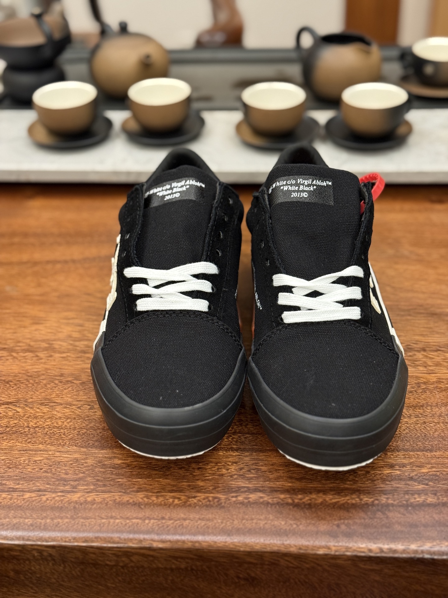 Off-White c/o Virgil Abloh Vulc Low Top 箭头低帮硫化帆布板鞋 尺码:36 37 38 39 40 41 42 43 44 45 46 47 Off-White 近日才发布其春夏新款鞋履,紧跟着就推出全新秋冬鞋款。此番带来的是一系列“ Off-Court ”运动鞋,其中除了基础的黑、白色 Vulc Low-Top 还有一双充满街头韵味的棋盘格元素,亮点其实在鞋内侧的橙色瓶贴以及鞋带头的橙色细节处理。该品牌标志性的箭头标志,防盗扣和鞋带的设计以及鞋后跟的字样也极具“THE TEN”系列的影子。
