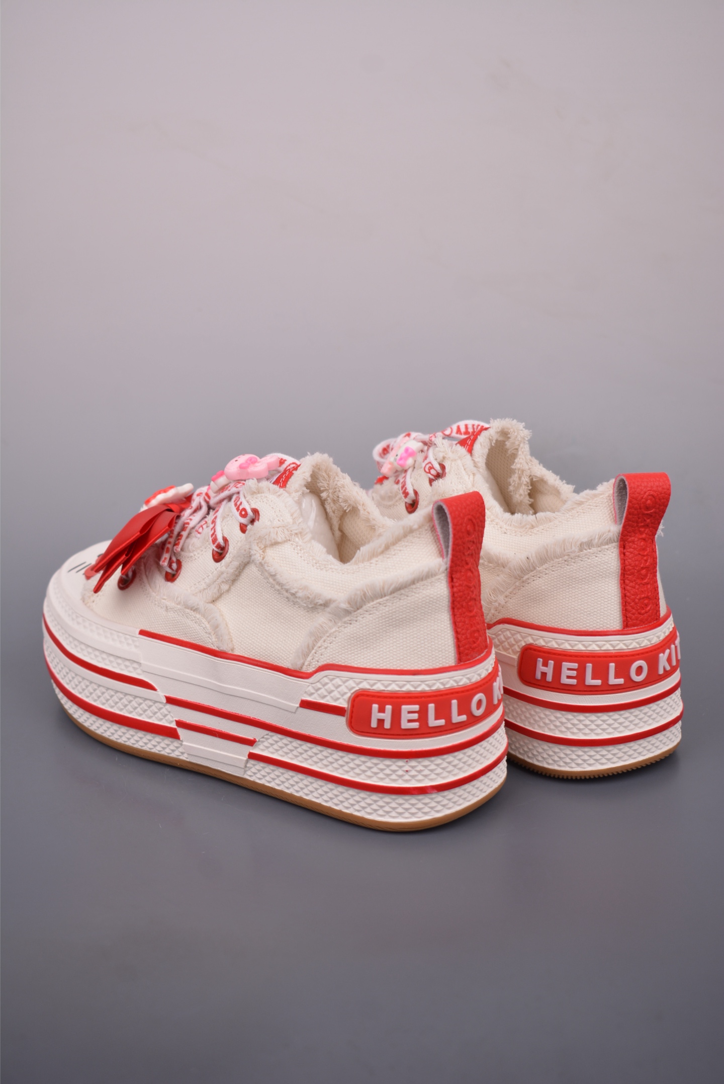 💰200 Sanrio x Old Order x Hello Kitty 三丽鸥联名凯蒂猫满印 增高耐磨透气日常休闲帆布鞋 官方货号: 70082722 尺码:35 36 37 38 39 40