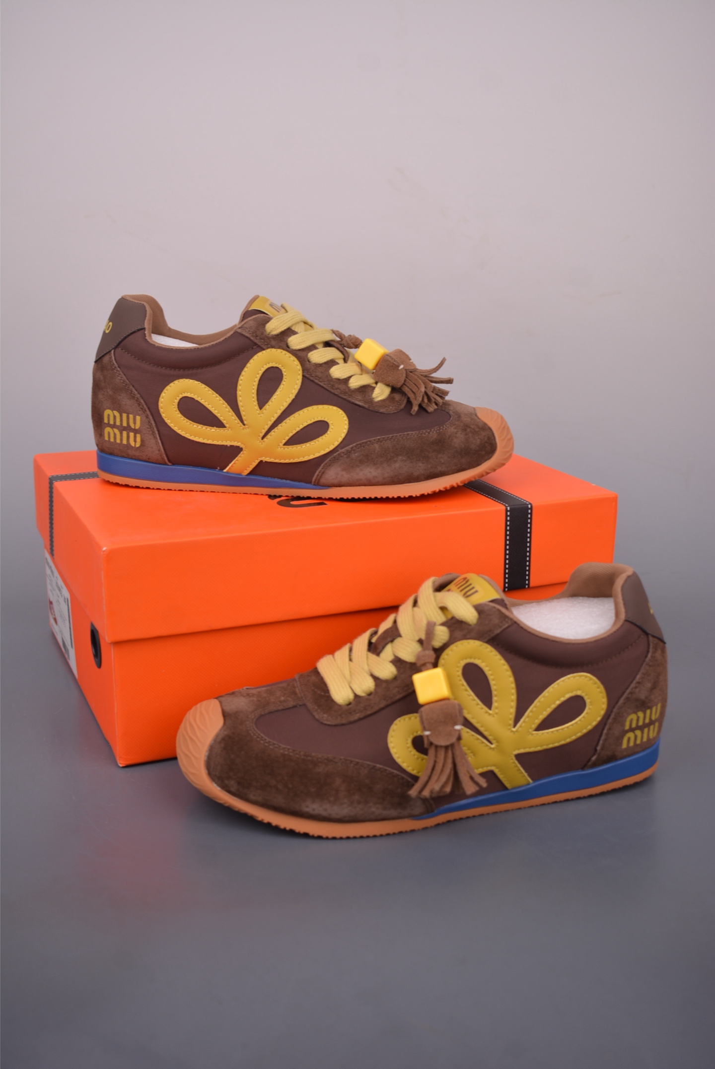 💰260 MIU MIU 缪缪 Sko A/S新款 颜值担当火爆款 厚底老爹鞋 不得不入的一款 做旧日时尚 简约高级 随意搭配上脚非常舒适 年度必入款 最新走秀款运动小白鞋国内外博主刷爆的一款 小红书种草系列 复古又时髦上脚美炸了简约的运动板鞋设计 极具辨识度的鞋舌 打造佛系甜美的休闲风 上脚气场十足随意搭配 选用头层牛皮材质 内里丝绸牛皮里 原版t抽真空厚底 复古擦色做旧 官方货号: 202509133633 尺码:35 36 37 38 39 40