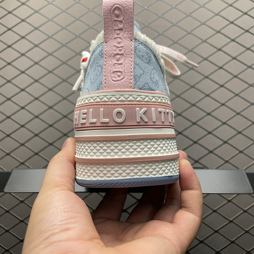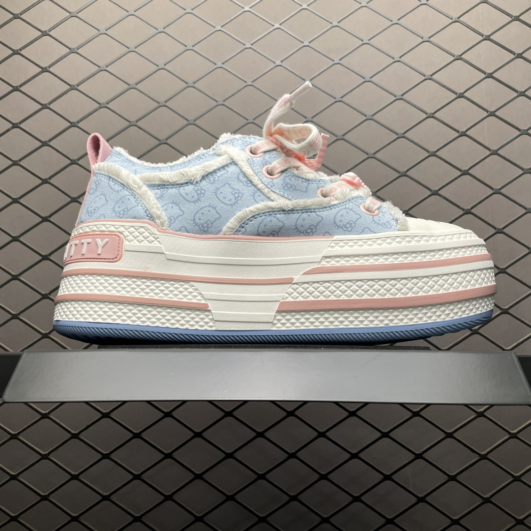 💰220 Sanrio 三丽鸥 x OLD ORDER 联名限定 凯蒂粉蓝 6.5CM 厚底增高帆布鞋 马卡龙 鞋身满印的Hello Kitty凯蒂猫图案真的好可爱 粉蓝色系的毛边设计满满小香风氛围感 脚感蛮舒适的不磨脚,搭配清新干净 小个子也能拥有大长腿 出街穿这双回头率拉满了 氛围感就够了 日常穿搭也很出彩啦 尺码:35 36 37 38 39 40 编号:27YDEF25