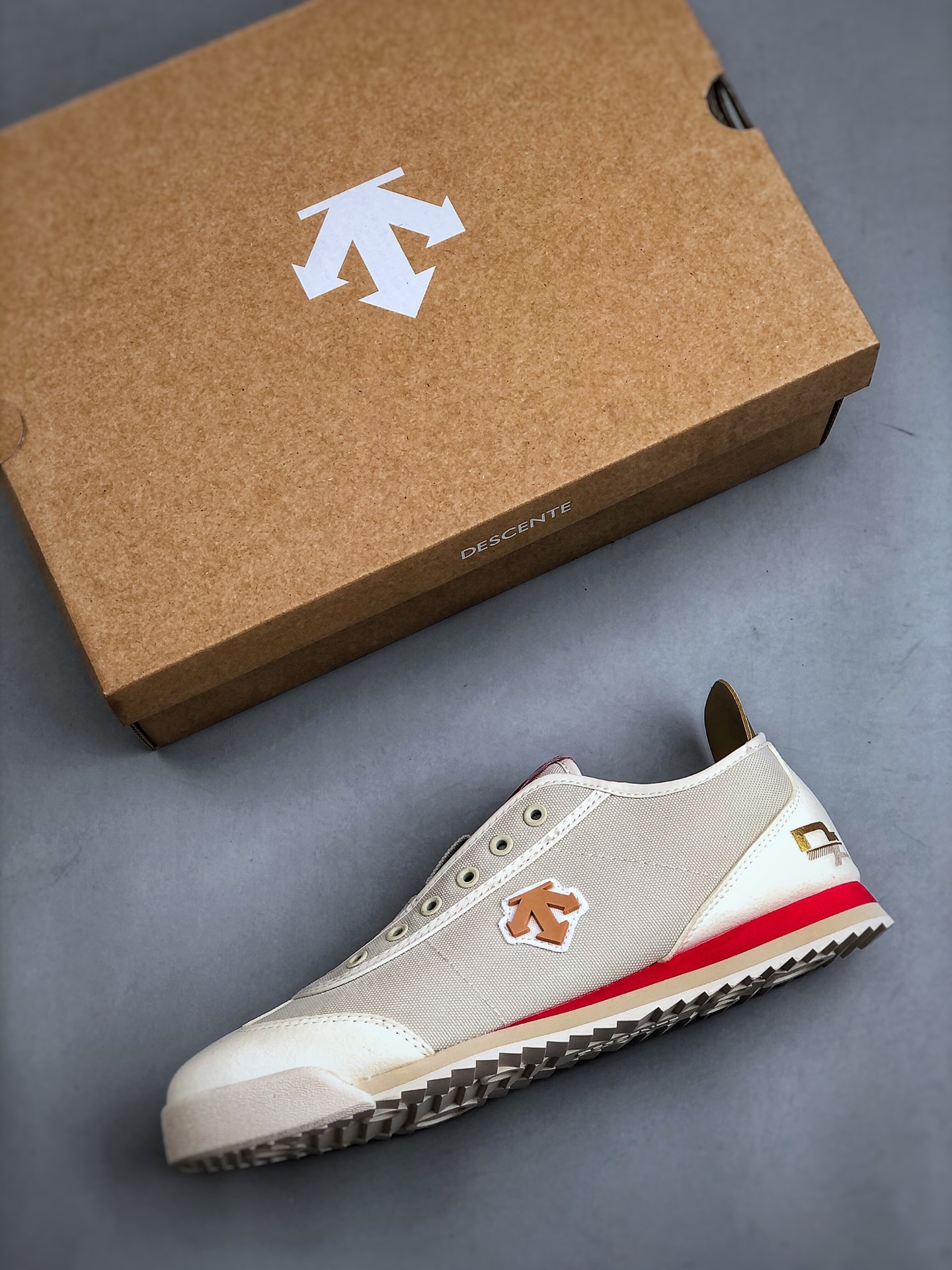 终端特价🉐️爆款福利🔥 跑量放店💰110 核心主推 原价市场160 180版本 纯原公司 DESCENTE CHRON 迪桑特复古运动一脚蹬帆布鞋👏透气休闲鞋 轻松方便的一脚蹬设计 搭配轻质弹性鞋底 脚感舒适 简洁的帆布鞋面设计适用于多场景穿搭 官方货号: D4231LSN14 尺码:36-45