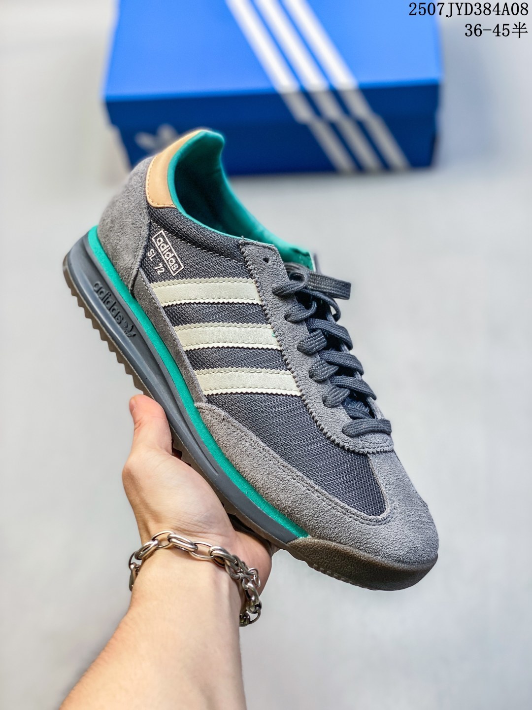 爆款阿迪adidas SL 72🈴️💰150 阿迪达斯Adidas SL 72 SHOES 经典复古薄底运动鞋「T头鞋」三叶草复古休闲跑步鞋休闲运动鞋 这款经典运动鞋携复古型格,来访你的活力日常——采用舒爽帆布鞋面、绒面革饰面和皮革细节等设计。含Ecotex鞋舌,更添质感;搭配EVA中底,助你舒适出行。采用经典低帮设计和橡胶外底,旨在打造时尚型格。• 常规版型• 系带设计• 锦纶、绒面革和皮革鞋面• Ecotex纹理感鞋舌• 乙烯/乙酸乙烯酯(EVA)中底• 织物衬里• 橡胶外底。 尺码:36 - 45含半码 07JXD384A08