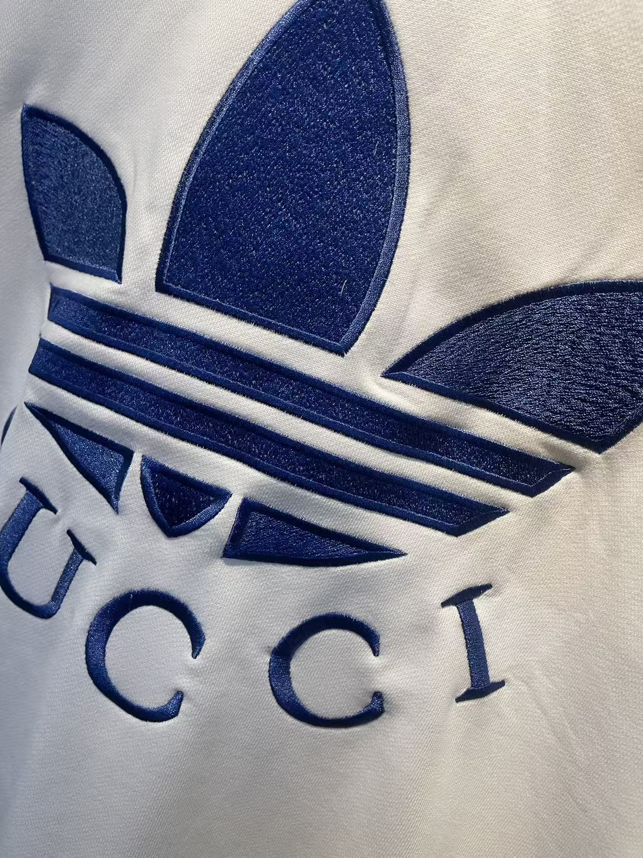 💰 140实拍图【顶级版本.官网品质】 #Gucci古驰##Adidas##联名刺绣#GuccixAdidas经典联名连帽卫衣 巨别市场通货,官方原版,定织定染米白色460g鱼鳞纹毛圈棉,手感松软细腻又比一般棉布料扎实,舒适透气不易变形,采用进口田岛刺绣机出品,针数高达4万9针,每件刺绣时长5小时,精密网版让绣花更为立体清晰细致,原版辅料一比一三标齐全,人工手缝织唛,还原专柜,官网品质巨别市场通货,欢迎对比 码数:XS - L 颜色:米白色