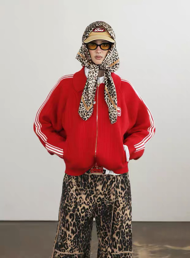 上身图 Badblood美式复古91星星毛巾绣翻领插肩针织开衫拉链外套棒球服 休闲街头风格 上身百搭巨好看 款号:2215 批发价:💰178 颜色:红色 白色 尺码:S M L