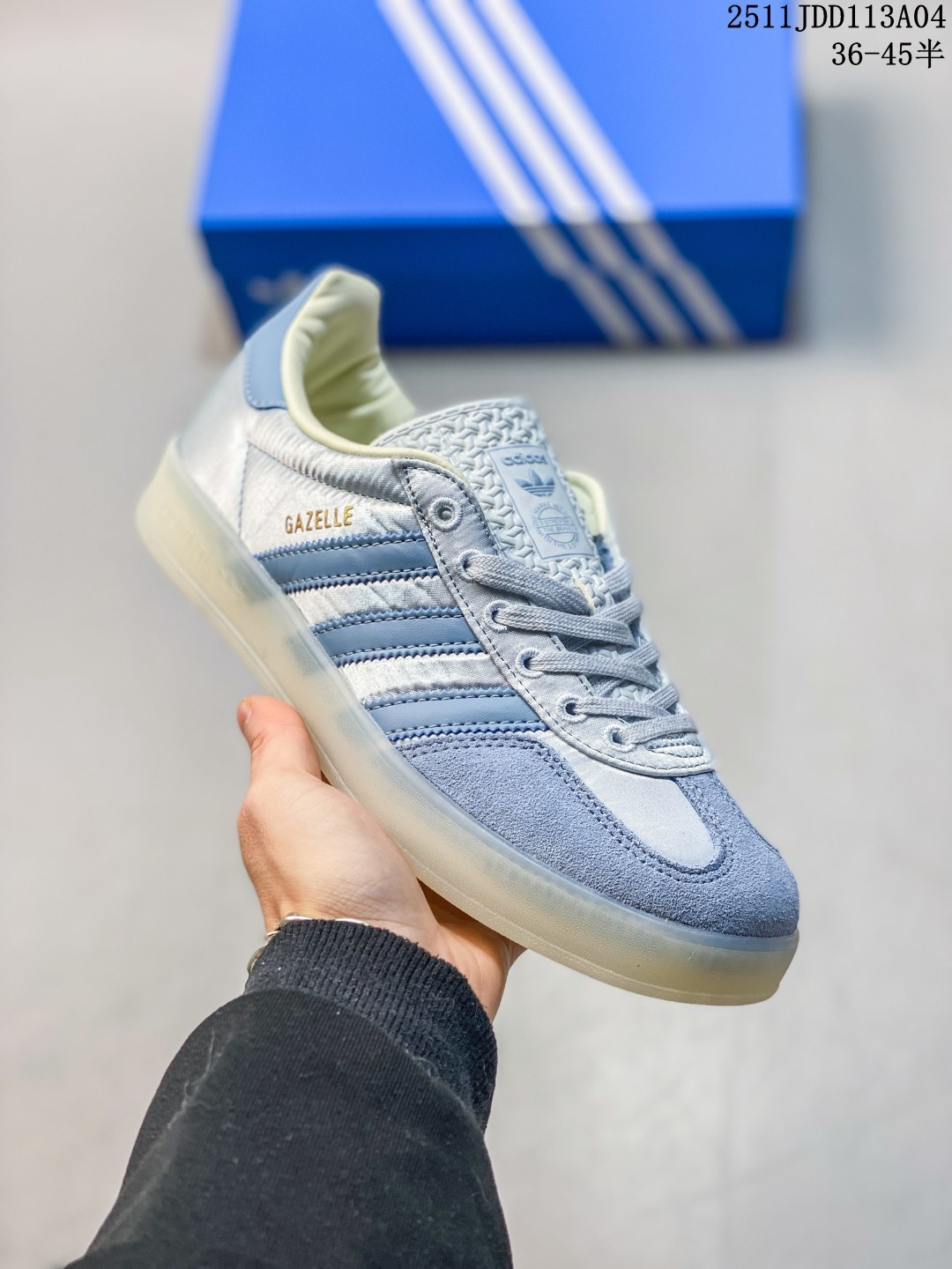 🈴 💰150✅AD Gazelle Indoor Trainers 羚羊内训系列低帮复古百搭休闲运动德训风板鞋 JI2709 90年代经典的复刻版!自60年代以足球训练鞋面世以来,Gazelle就以其经典设计席卷全球。1991年版本的复刻,再造经典Gazelle。采用皮革打造,搭配浊色细节,让这款经典更加简约。尺码:36-45半 ID:329JDD1105 11JDD113A04
