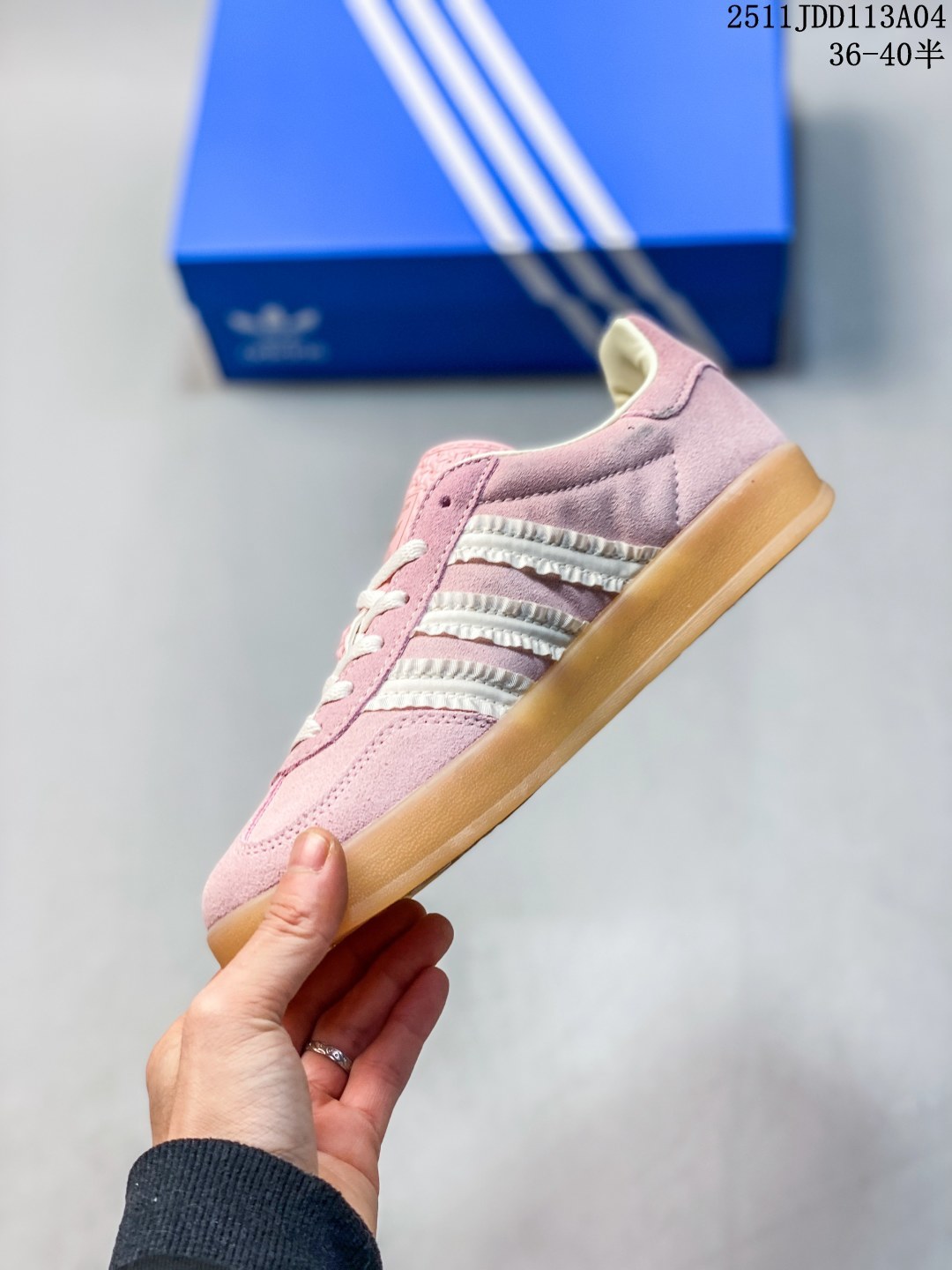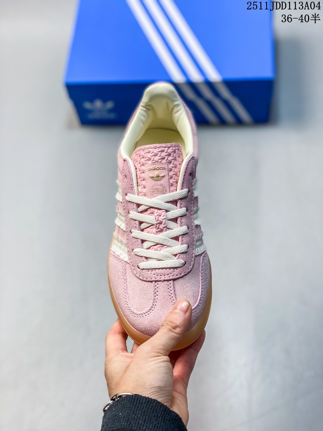 💰150 ✅AD Gazelle Indoor Trainers 羚羊内训系列低帮复古百搭休闲运动德训风板鞋 JI2709 90年代经典的复刻版!自60年代以足球训练鞋面世以来,Gazelle就以其经典设计席卷全球。1991年版本的复刻,再造经典Gazelle。采用皮革打造,搭配浊色细节,让这款经典更加简约。尺码:36-40半 ID:329JDD1105 11JDD113A04