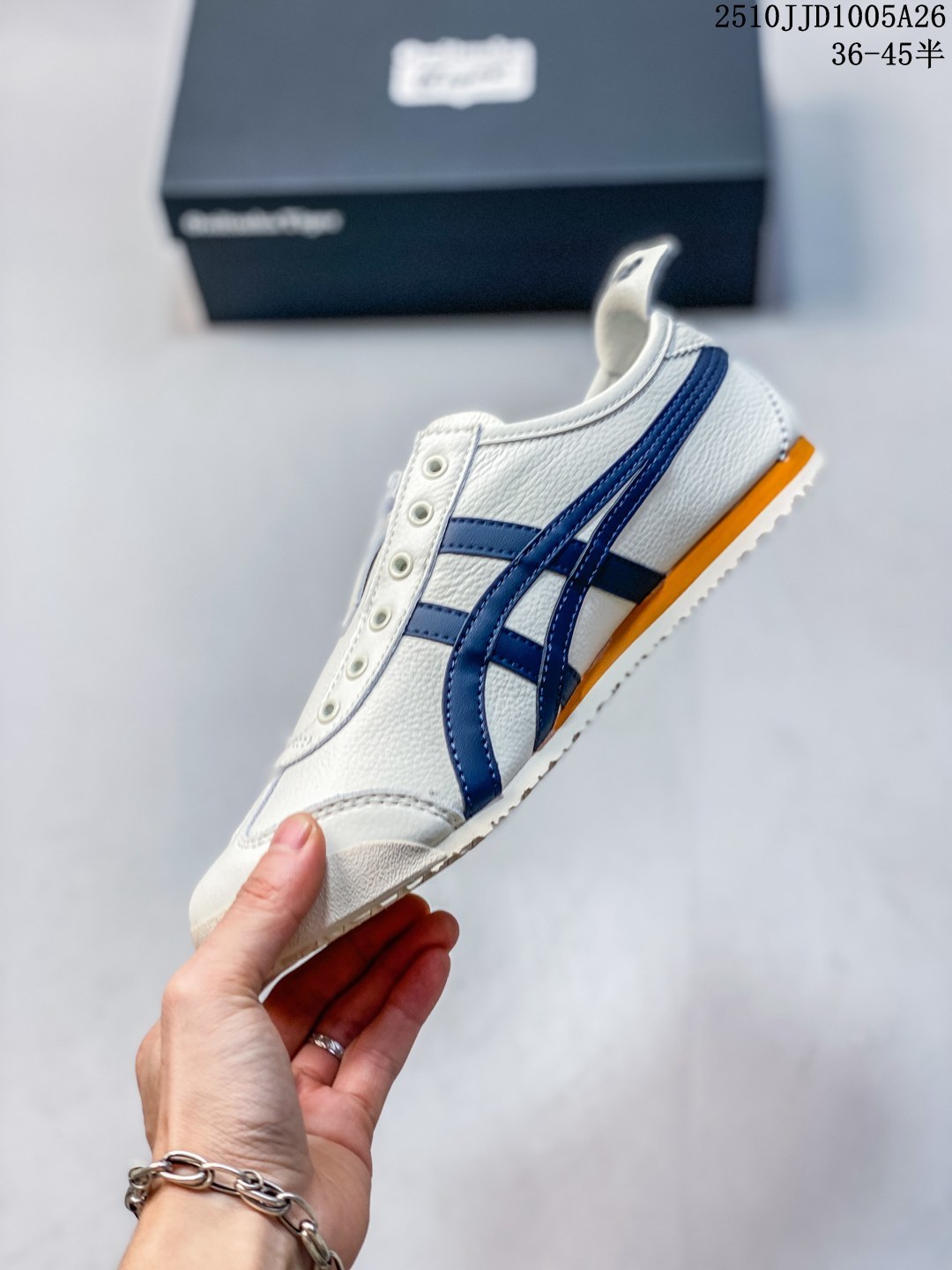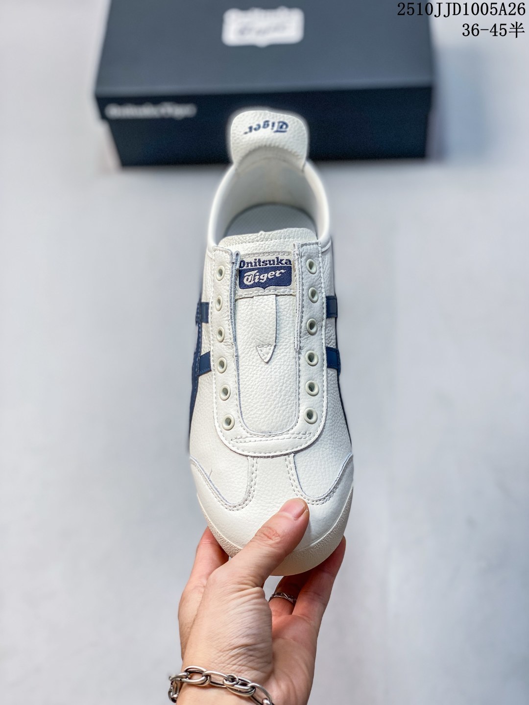 💰170 公司级 Onitsuka Tiger MEXICO66 Paraty Slip-On 亚瑟士鬼塚虎一脚蹬经典休闲帆布鞋。虎爪造型的Logo,鞋身稳定包裹系统支撑鞋身。鞋头外包橡胶片,保护脚趾,耐磨损。穿脱简洁,懒汉风格。 货号:1183A962-100 尺码:35~45带半码 编码:10JJD1005A26