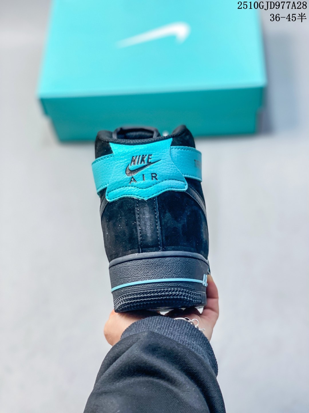 💰270。纯原✅NIKE X TIFFANY & AIR FORCE 1 1837 蒂芙尼联名 耐克 空军一号 潮流复古 高帮板鞋 是一次传奇跨界合作 将蒂芙尼悠久历史与Nike Air Force 1的运动精神完美融合 蒂芙尼因其卓越的珠宝设计和银器工艺自1837年起享誉全球 而Nike Air Force 1自1982年问世以来一直是街头文化的象征 拥有独特的科技配置和体育精神 这次合作中 鞋款采用了优质的黑色麂皮Swoosh部分使用蒂芙尼标志性的蓝色 展现品牌联名的特殊身份 鞋跟部位巧妙融入纯银细节装饰 致敬蒂芙尼银器工艺 提升了鞋款的奢华感 蒂芙尼还推出了纯银配饰以庆祝此次合作 展现了他们对美学和工艺的追求 这双联名球鞋是时尚与运动的桥梁 更是对卓越工艺和体育精神的共同致敬 货号:DZ1382-101 Size:36 36.5 37.5 38 38.5 39 40 40.5 41 42 42.5 43 44 45 ID:JSD534-DZH 10GJD977A28