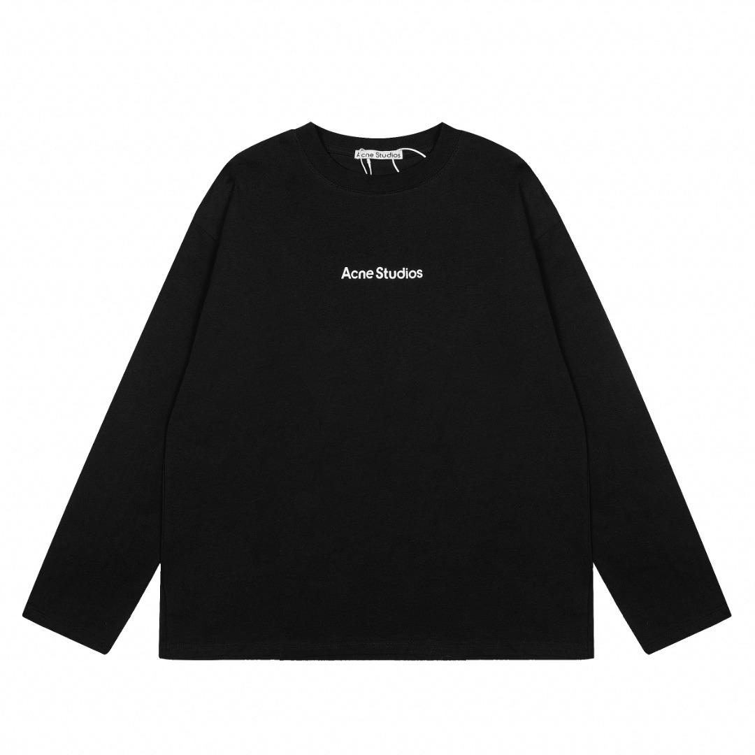 P90【经典款】Acne Studios男女同款圆领徽标印花休闲简约长袖T恤 款号:AC917 批发价:P90 码数:S M L XL 颜色:黑色 白色