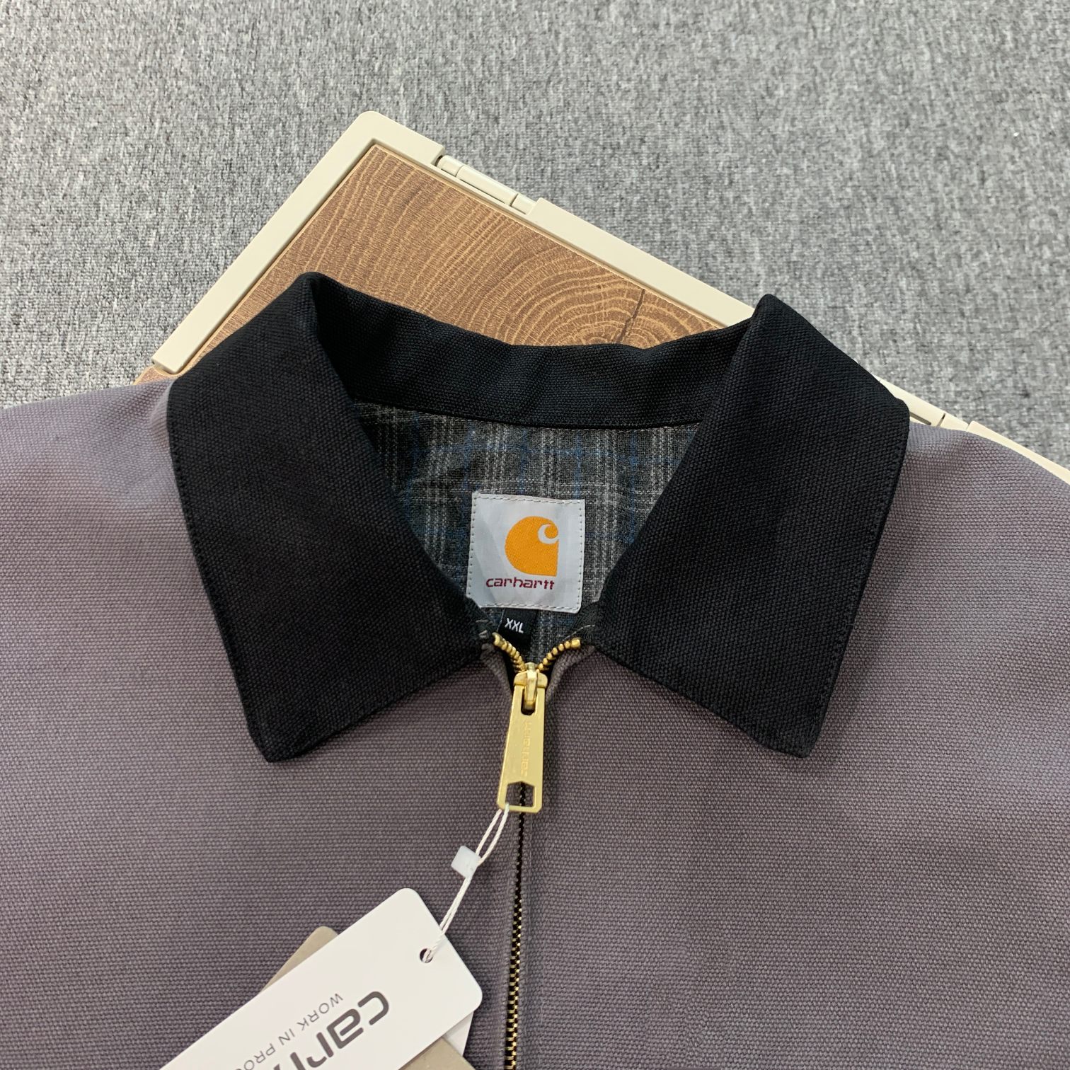 205💰 款号T137 新款CARHARTT-卡哈特J97 Vintage 水洗做旧重工底特律夹克 古着工装帆布外套 多口袋 拉链翻领工装外套 今年最火单品 来自博主口口桑的上身穿搭 许多明星博主上身 kanye球星亚历山大ken等等 定织高密帆布面料 为了达到古着款年久做旧的效果 需要成衣染色 再反复褪色 调色,做旧皮标 开模做旧五金辅料 内里为涤棉格纹面料 袖子机行薄棉 上身挺廓 重磅款式!有130年历史的美国品牌 卡哈特以制造品质卓越 舒适耐用的高质量工作装而闻名 是近期最火热的工装品牌之一 其经典程度在众多美式工装玩家心中的地位品种呈现不可言喻⚠️ 这件vintage卡哈特J97工装拉链外套cleanfit风修饰身形 做旧水洗味道非常重上身非常有内味儿 颜色:汽油紫 尺码:M-XXL