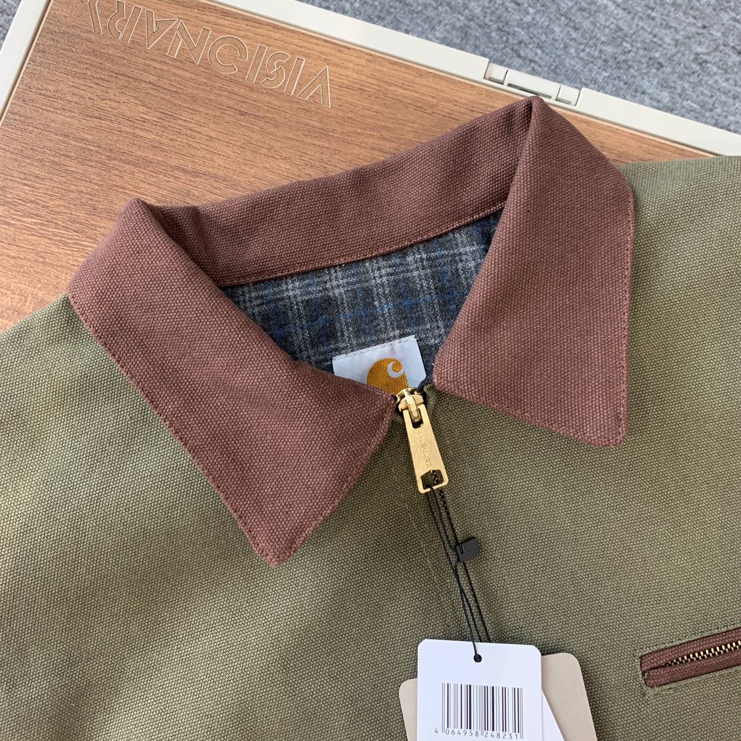 💰205 款号T136 CARHARTT-卡哈特J97 Vintage 水洗做旧重工底特律夹克 古着工装帆布外套 多口袋 拉链翻领工装外套 今年最火单品 来自博主口口桑的上身穿搭 许多明星博主上身 kanye球星亚历山大ken等等 定织高密帆布面料 为了达到古着款年久做旧的效果 需要成衣染色 再反复褪色 调色,做旧皮标 开模做旧五金辅料 内里为涤棉格纹面料 袖子机行薄棉 上身挺廓 重磅款式!有130年历史的美国品牌 卡哈特以制造品质卓越 舒适耐用的高质量工作装而闻名 是近期最火热的工装品牌之一 其经典程度在众多美式工装玩家心中的地位品种呈现不可言喻⚠️ 这件vintage卡哈特J97工装拉链外套cleanfit风修饰身形 做旧水洗味道非常重上身非常有内味儿 颜色:苔藓绿 尺码:M-XXL