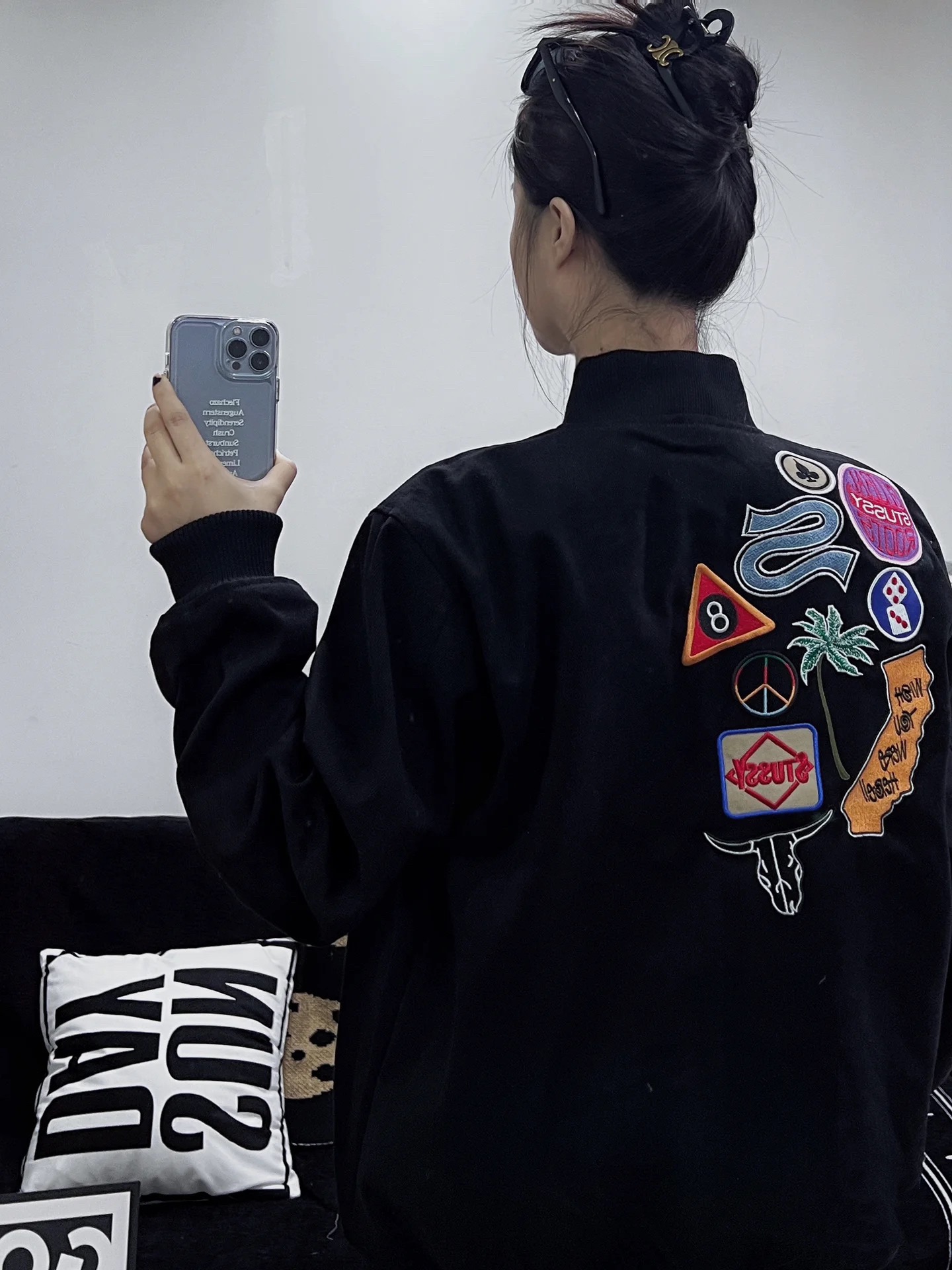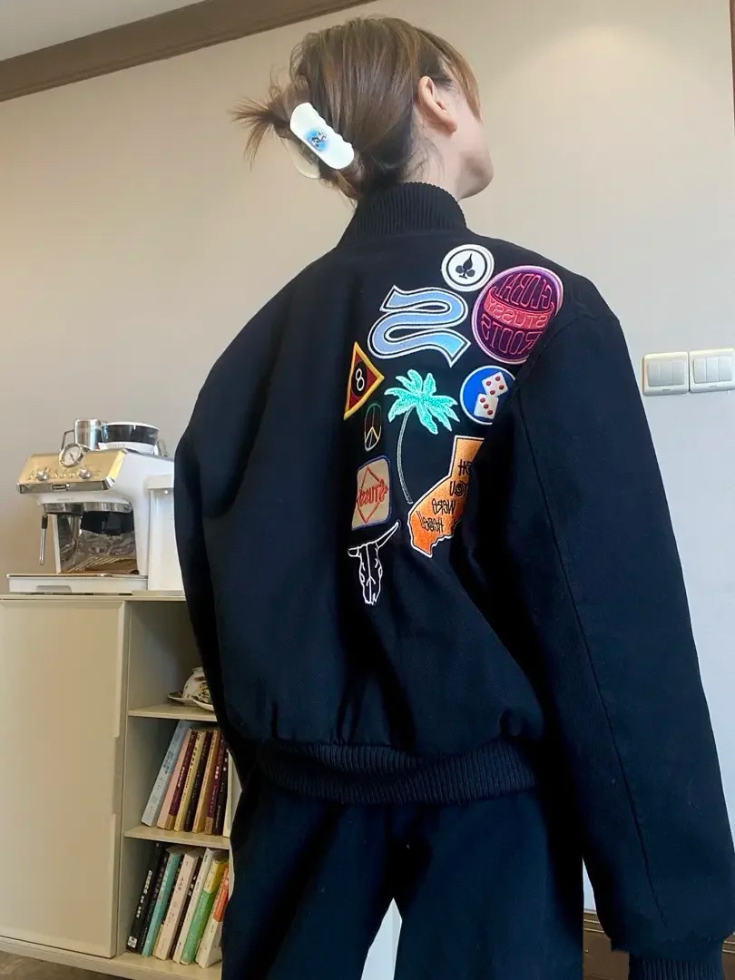 STUSSY/斯图西25ss徽章贴布刺绣棒球服夹克 尺码表#