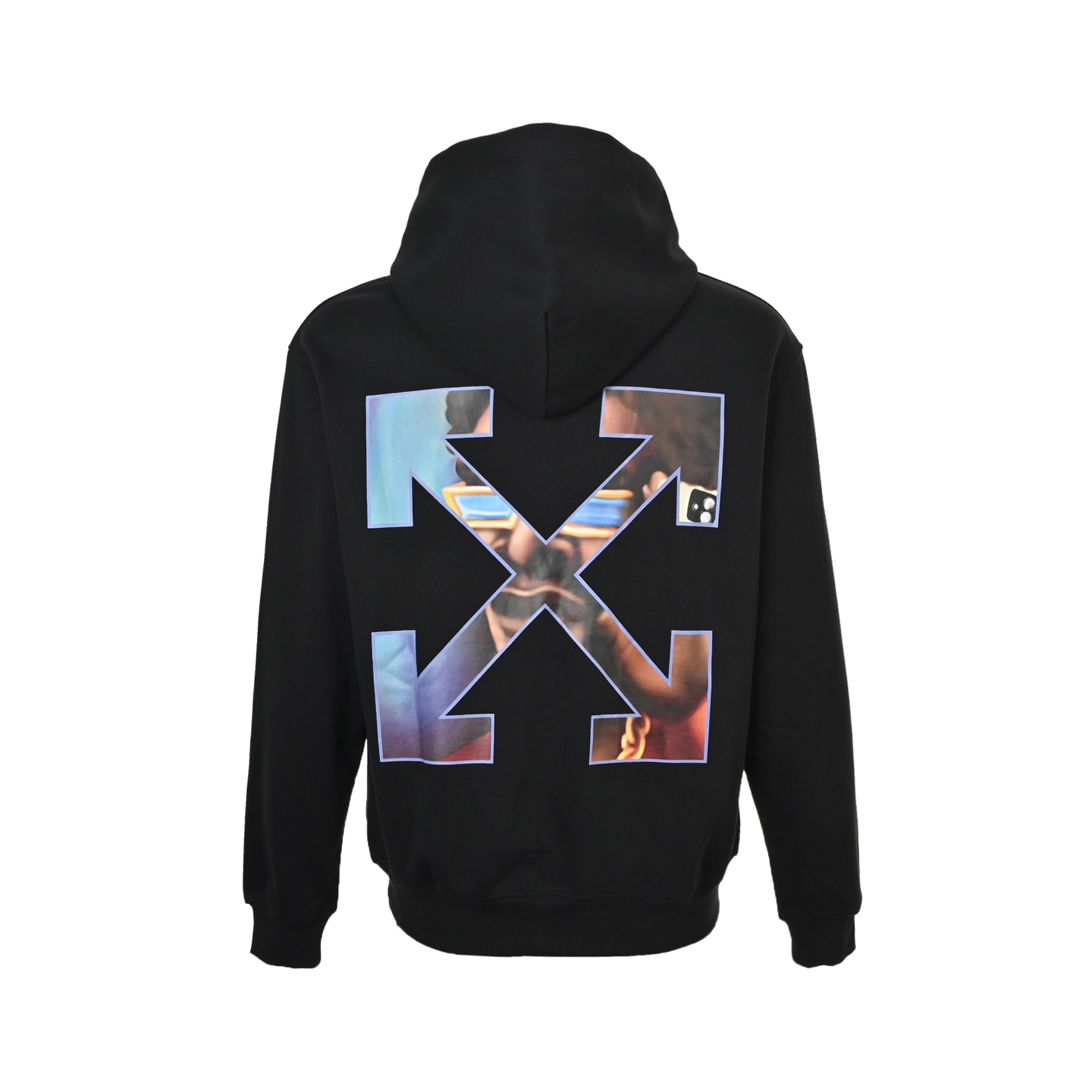 本地自取:💰280 OFF WHITE CO VIRGIL 人像透叠箭头印花连帽 所有面料以及螺纹均为订织定染 所有面料颜色均经过色卡比对定染面料 定织定染400G毛圈全棉面料 布面丝滑质感 成衣水洗预缩处理不掉色不缩水 印花采用日资MIMAKI印花机作业 不起边无毛边 喷绘烫画热压冷撕 透布纹防刮擦熨烫作业 印花不起雾 印花重合颜色深浅均有差别 为简约设计增添了层次感 0色差定染帽绳以及面料螺纹 洗标也是按照原版的字体找公司订做 辅料部分依旧采用全线正确辅料 长方形梭织领标设计 把之前的立体硅胶手感字体取消改为全梭织领标 五联硅胶吊牌 三联水洗标以及包装线依旧 Size:XS-L