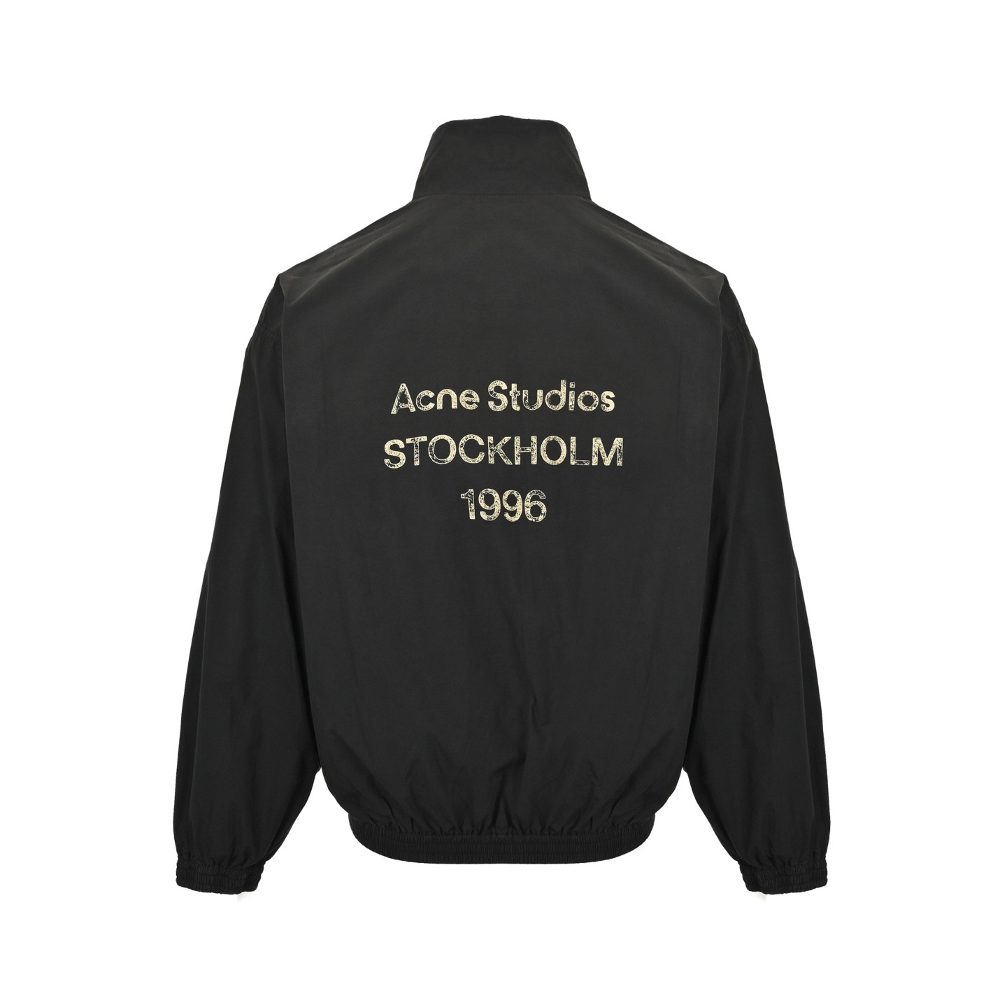 本地自取:💰300 Acne Studios 1996做旧字母印花夹克外套 黑白两个颜色全部购入原版开发,光买一个颜色是根本做不出来,因为黑白两个颜色的成衣处理工艺完全不同,表面面料采用100D全棉平纹面料,里布采用弹力网眼布,具有吸湿排汗功能,黑白都是各500米起订量,必须定织定染,否则不可能颜色一样,开模定制Lampo铜质拉链,开模费用相当高昂,并且后续还需要经过做旧处理,金属质感满满,拉头上全部带有Acne刻字logo,印花部分虽然看起来是一套色胶浆,但是字母里的细节网点部分非常难处理,需要画稿师傅一点一点抠细节调整处理,并且需要保证极高的牢度采用特种浆料,因为后续有多重水洗喷色工艺,关于成衣后道处理工艺,白色夹克需要先染色至原版一样的底色然后再喷涂上半部分的颜色,非常难把控,注意白色不是喷马骝,黑色夹克才是在上半部分喷马骝形成轻微的做旧感,定制辅料三标出品,男女同款 Size:42-48