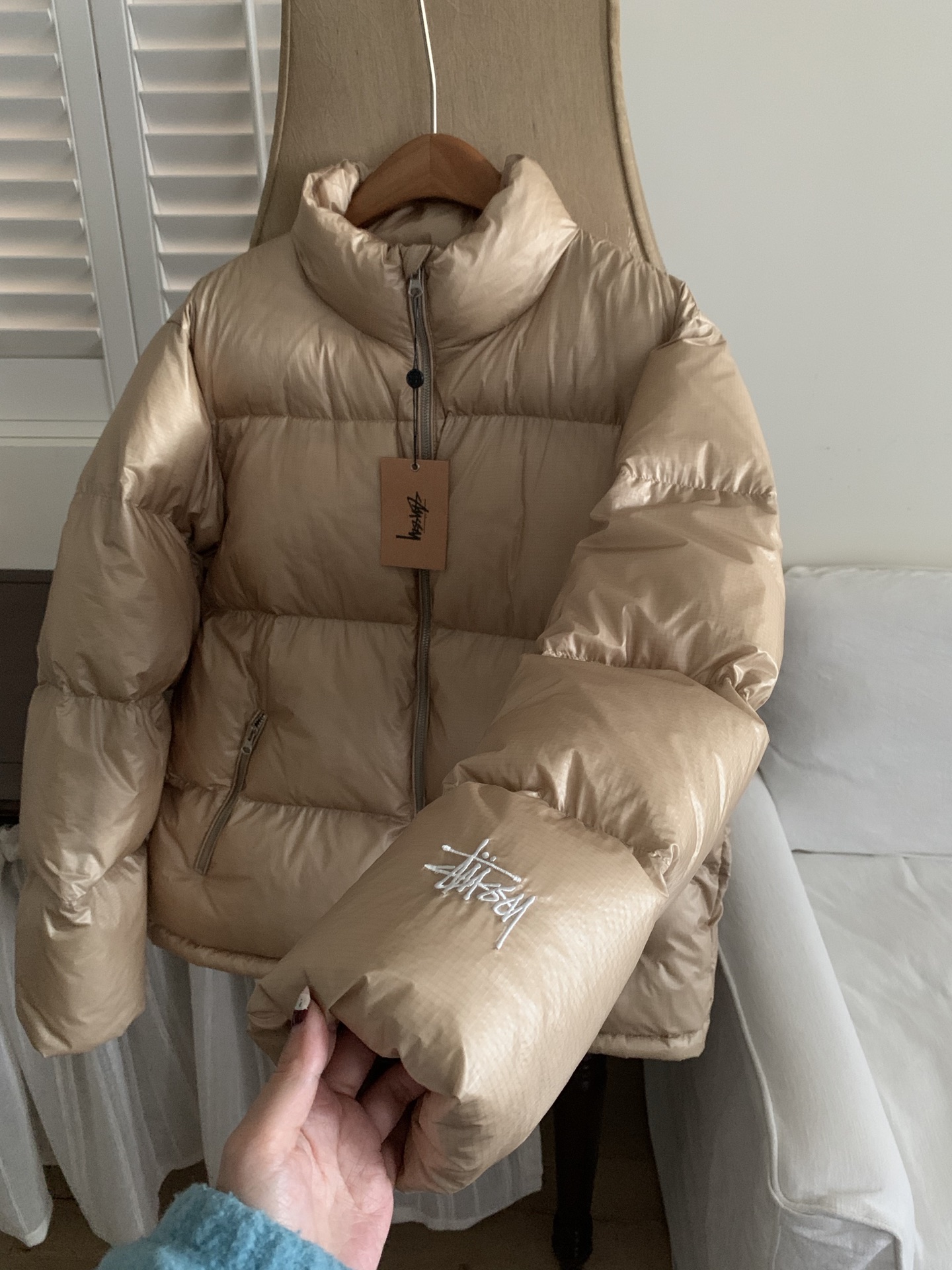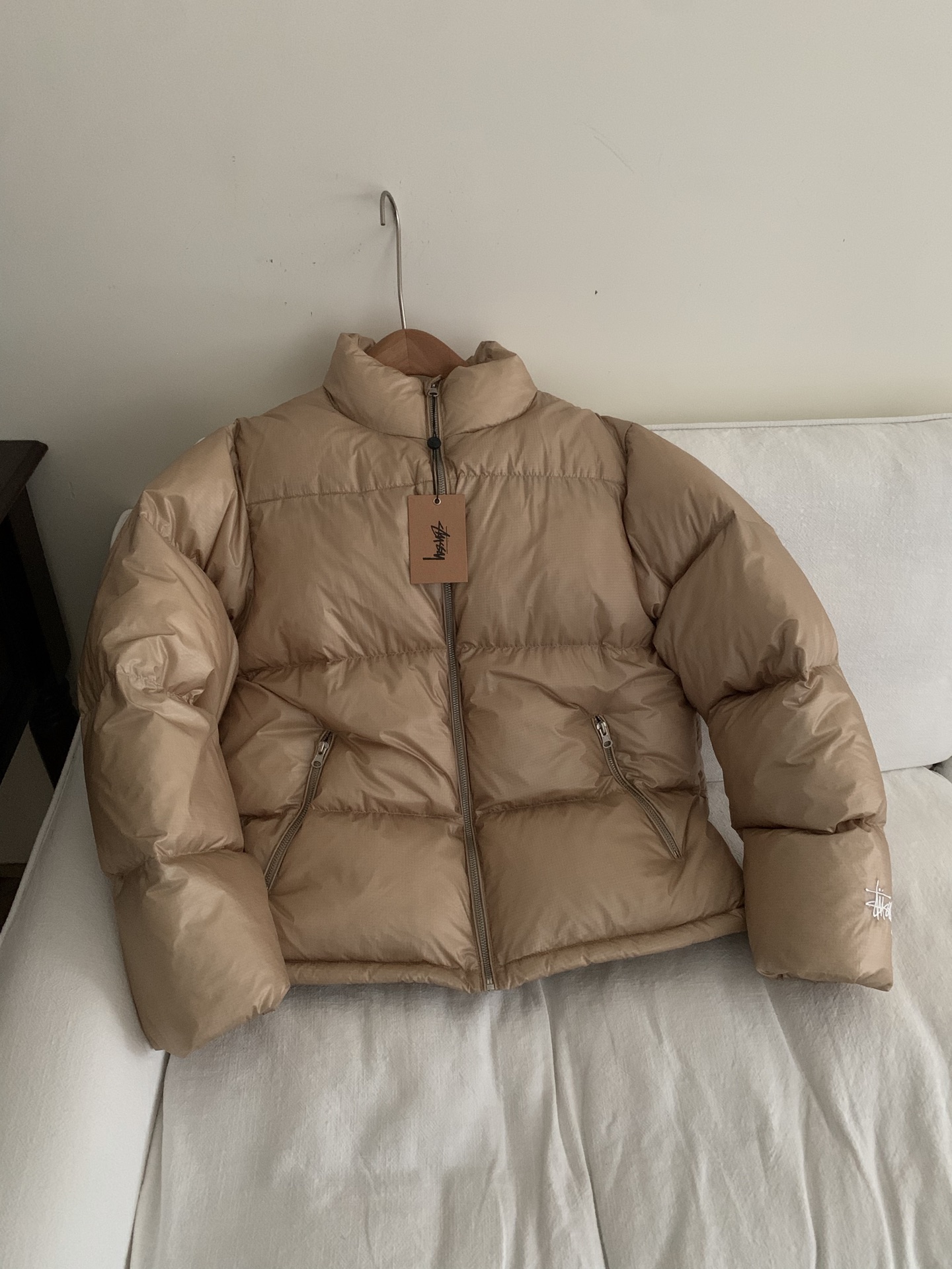 卡其细节. Stussy斯图西 Down Puffer Parachute Ripstop 降落伞防撕裂拉链立领韩系羽绒服 男女同款 填充:90白鸭绒 800蓬松