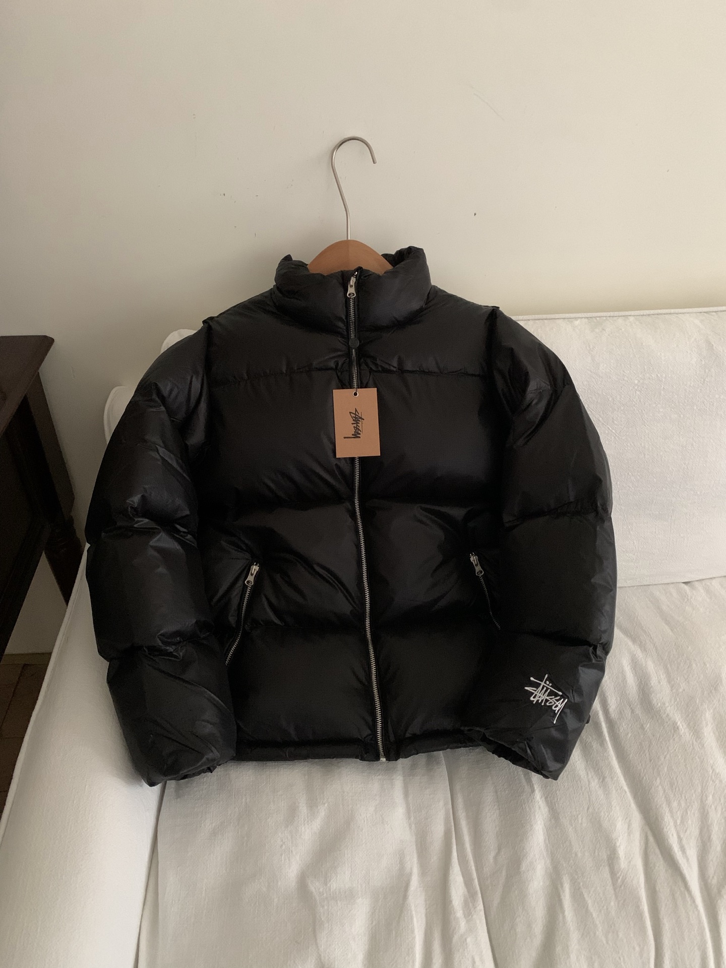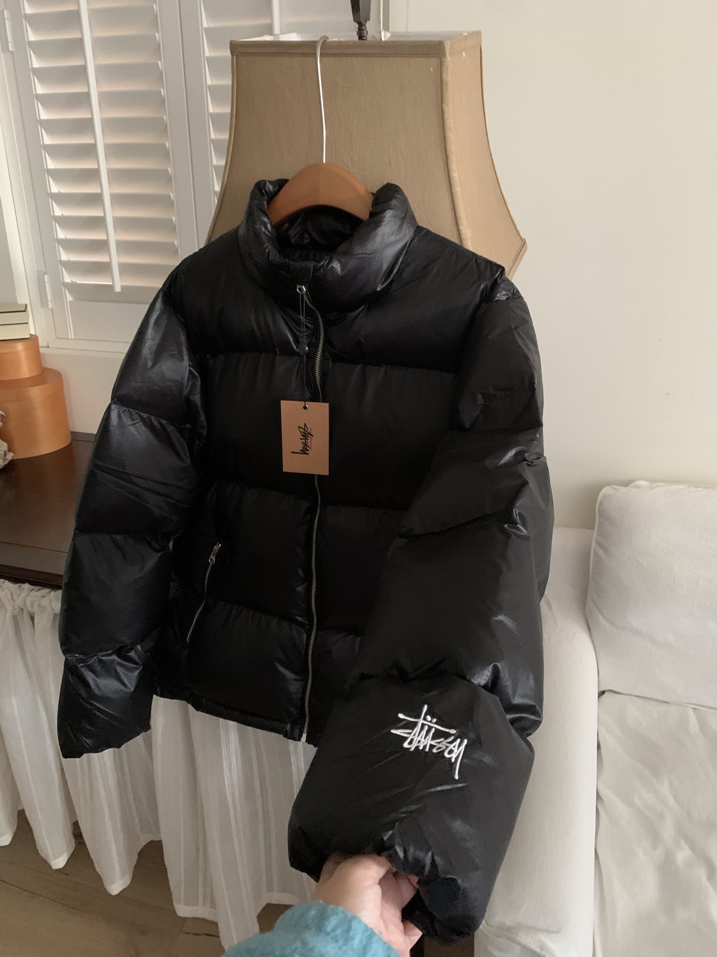 黑色细节. Stussy斯图西 Down Puffer Parachute Ripstop 降落伞防撕裂拉链立领韩系羽绒服 男女同款 填充:90白鸭绒 800蓬松