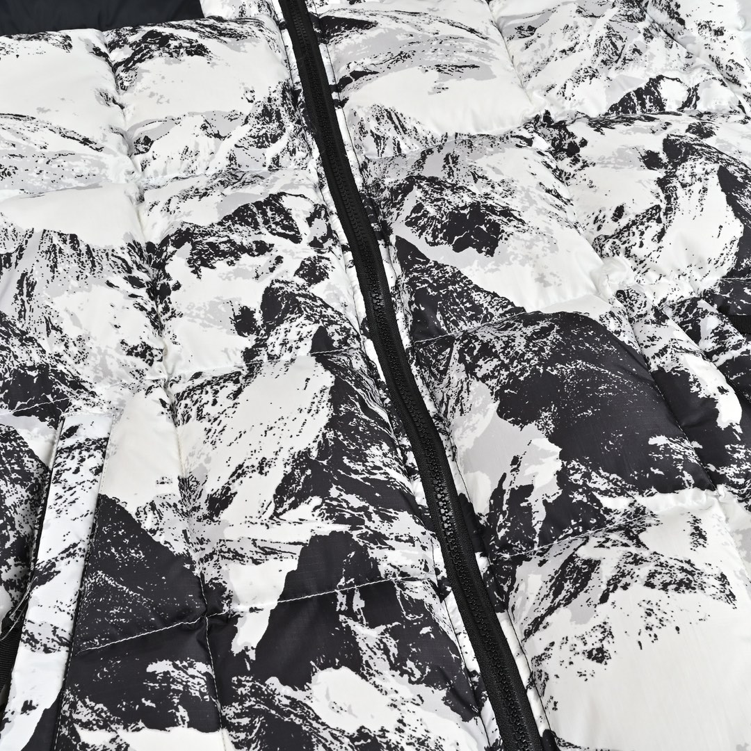 𝐓𝐡𝐞 𝐍𝐨𝐫𝐭𝐡 𝐅𝐚𝐜𝐞 𝐌‘𝐒 𝐋𝐇𝐎𝐓𝐒𝐄 𝐞𝐜𝐨面料版 北面雪山3.0水墨黑白 🔝产品配色: 黑白色 🔝产品尺码:S M L XL XXL 🔝产品介绍: 1️⃣eco版型区别1996 偏修身,偏小1-2码。 2️⃣刺绣采用进口田岛绣花万针刺绣,采用进口7号针,日本女皇绣线,保证每字饱满工、立体感清晰。 3️⃣填充80%白鸭绒,不做任何虚假宣传。保证保暖性的同时,更加轻便。轻松低于零下30多度严寒低温。 4️⃣正品YKK吉田ISO9000拉链,拉动更丝滑流畅,区别市面假YKK。家定制五金辅料,100%还原ZP。辅料及扣子均采用原版一致铜芯弹簧,非市面铁芯弹簧。 5️⃣高密度户外防水涂层格子面料,高端防跑绒涂鸦里布+320T三防胆布.绝不钻绒(如有钻绒随意换新) 6️⃣经DWR防泼水处理,轻质耐磨防撕裂,更具出色的防风防泼水性能,为户外活动提供属实防护。 🔝产品包装:独家定制旗舰店原版快递包装纸箱,胶带,还原ZP。区别以往超薄飞机盒,更加精美有档次。超大超厚超硬超有质感。完美应对快递暴力搬运,不会再发生以往纸箱压扁,客户收到箱子被破坏等情况。