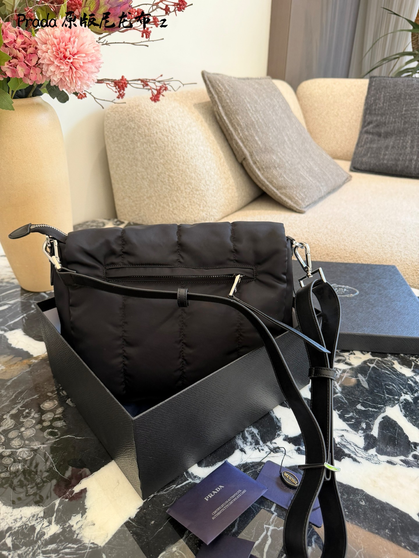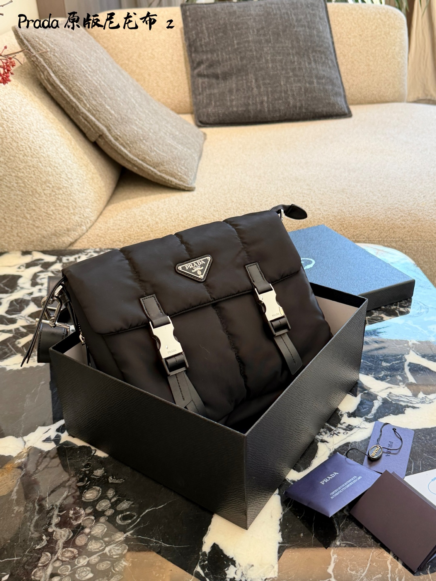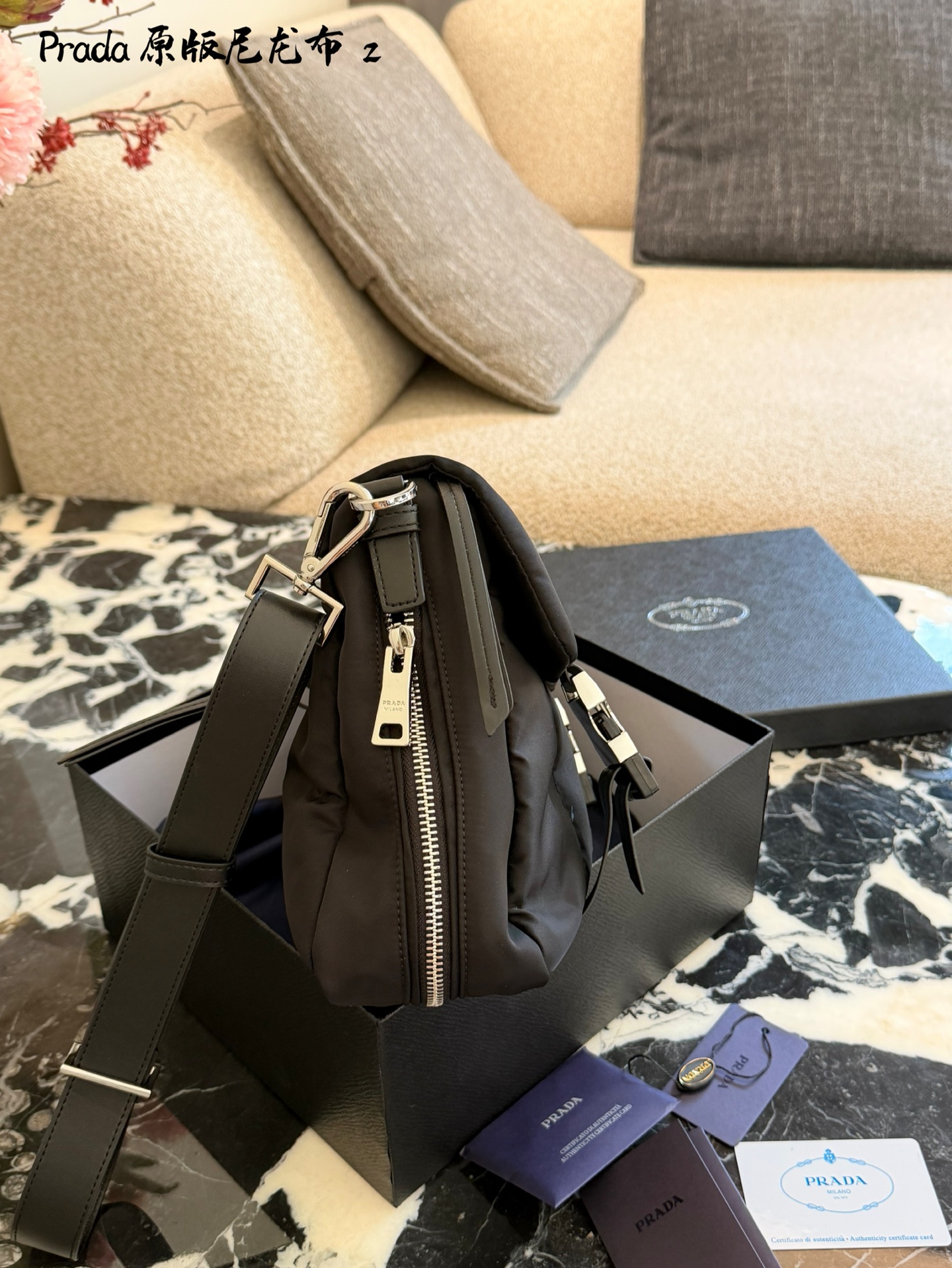 💰280 Prada尼龙邮差包更好背呀 普拉达尼龙邮差包~自重很友好 有塔扣放东西也很有安全感 肩带可以调节哦 男女同款! 又休闲又帅气26cm配盒子