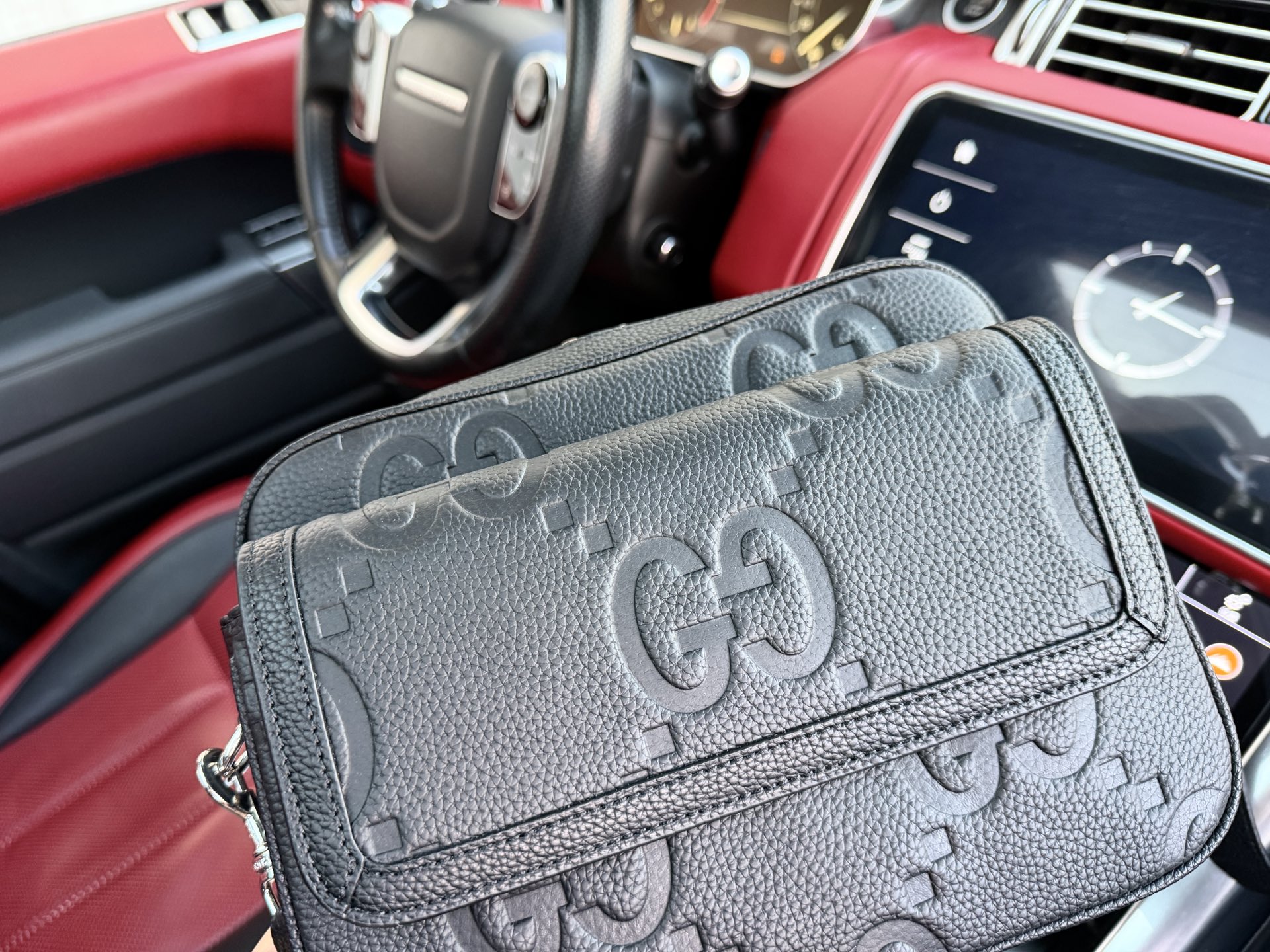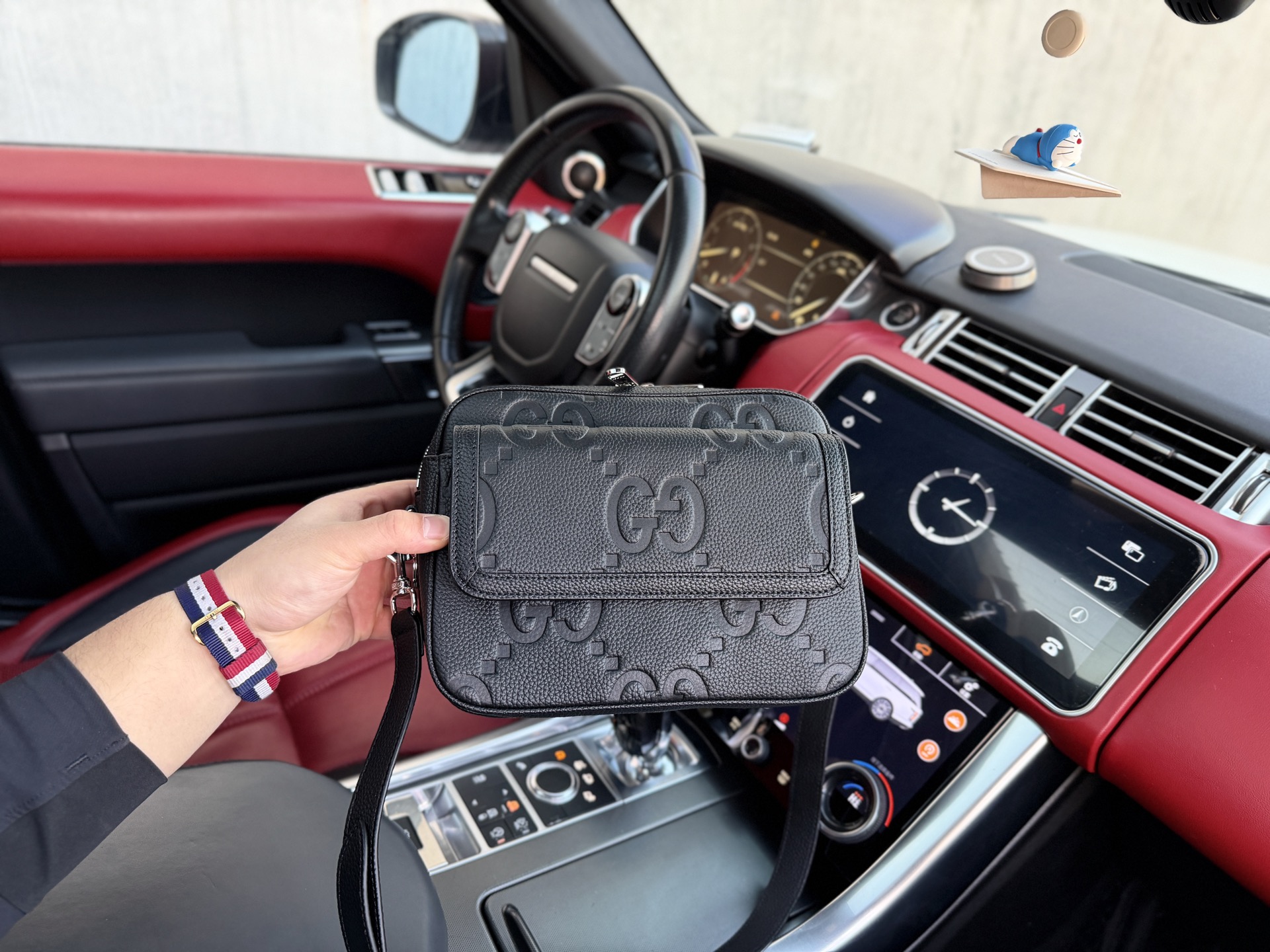 💰280 📷高端货‼️ 新款 “ GUCCI ”古奇单肩包💼 酷奇单肩包 古驰男士牛皮单肩斜挎包 JUMBO GG 可调节肩带磁吸扣开合 粒面软皮 头层牛皮 单肩斜挎包 男款 黑色 超高清五金logo标志、顺滑拉链、油边超平滑、做工精致每个细节到位!男人必备款。X规格:23x19x10cm 配折叠礼盒🎁
