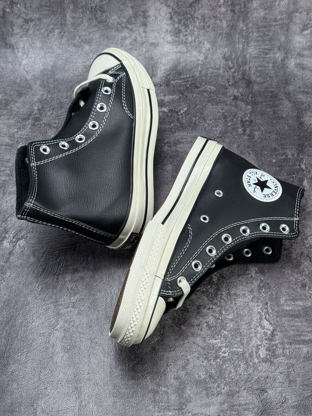 匡威1970S经典复古黑色高帮加绒皮‼️ CONVERSE匡威秋冬新款1970s经典黑色荔枝纹牛皮革加绒黑白皮面男女高帮复古休闲鞋 货号:A13863C SIZE:35 36 36.5 37 37.5 38 39 39.5 40 41 41.5 42 42.5 43 44