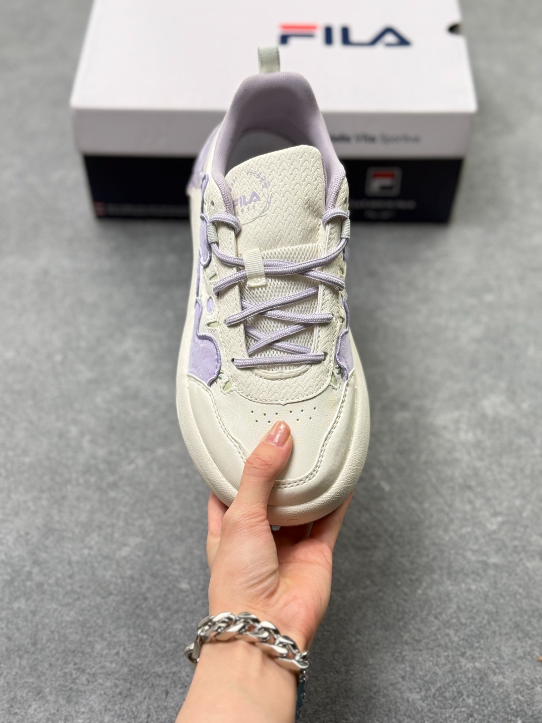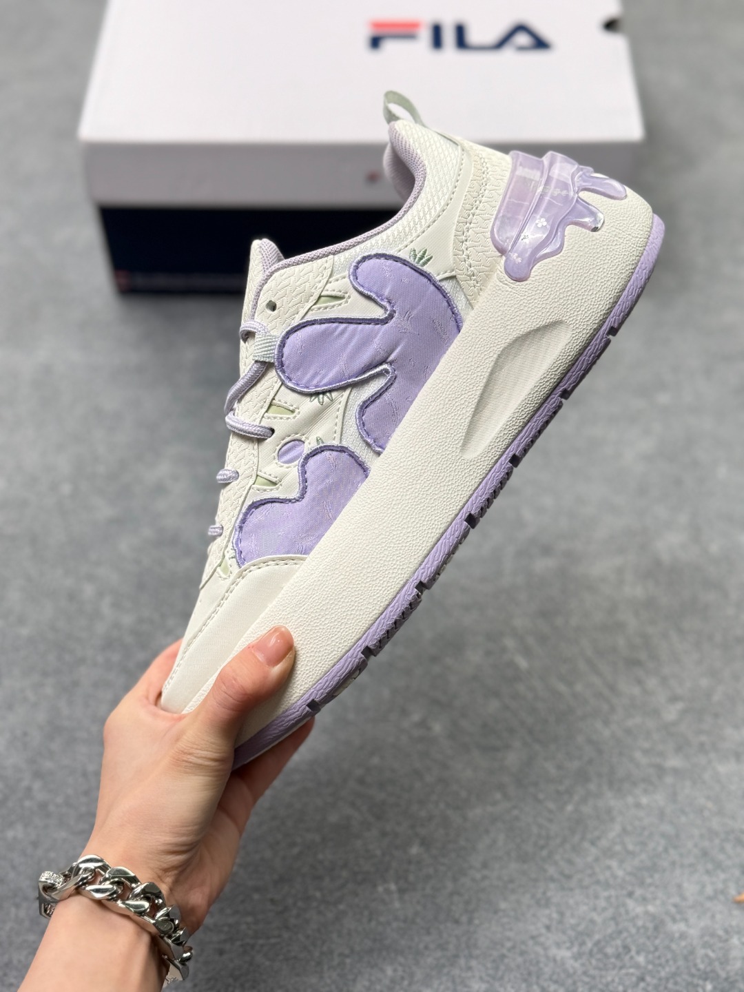 💰160 FILA斐乐 CACTI LAVENDER 仙人掌薰衣草主题 时尚个性潮流复古休闲百搭舒适 轻便透气增高 低帮 板鞋 女款 白紫色 货号:F12W531210FMO size:35.5-40