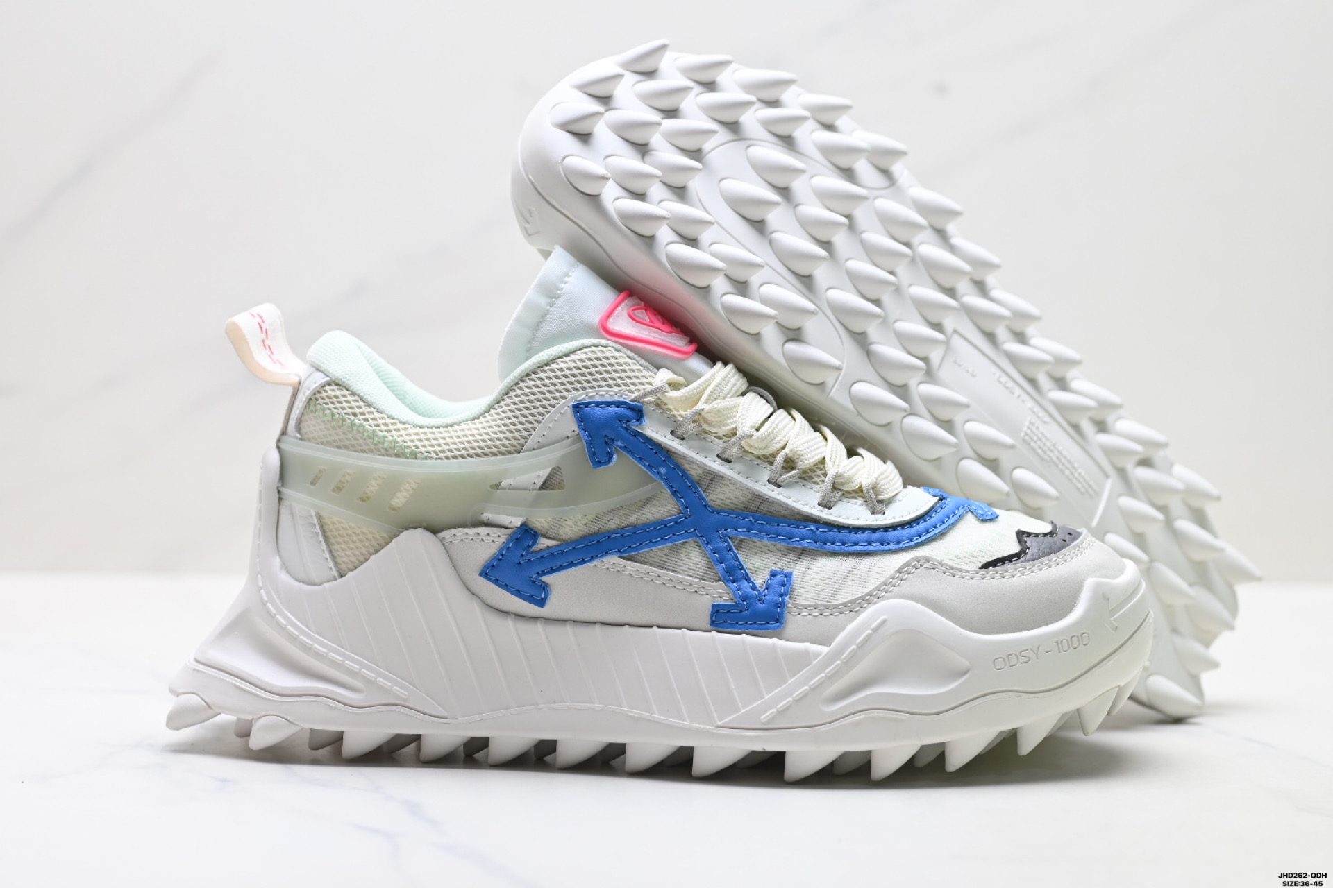 💰220 公司级✅Off潮牌OW老爹鞋White ODSY 箭头增高登山厚底情侣增高休闲运动鞋 ODSY-1000 Chunky Arrow复古跑鞋系列 帮面:网纱十革料 脚垫:发泡缓震EVA物料 内里:网织布 鞋底:EVA发泡+橡胶 受90 年代至2000 年代初的厚底跑鞋影响,该 系列融合了90年代复古跑鞋美学、解构主义设计, 旨在打造莱具潮流厲性和运动功能的高端鞋款,在经 典跑鞋轮廓上加入现代材质 货号:OMIA139R208000530133 尺码:36-45 lD:JHD262-QDH