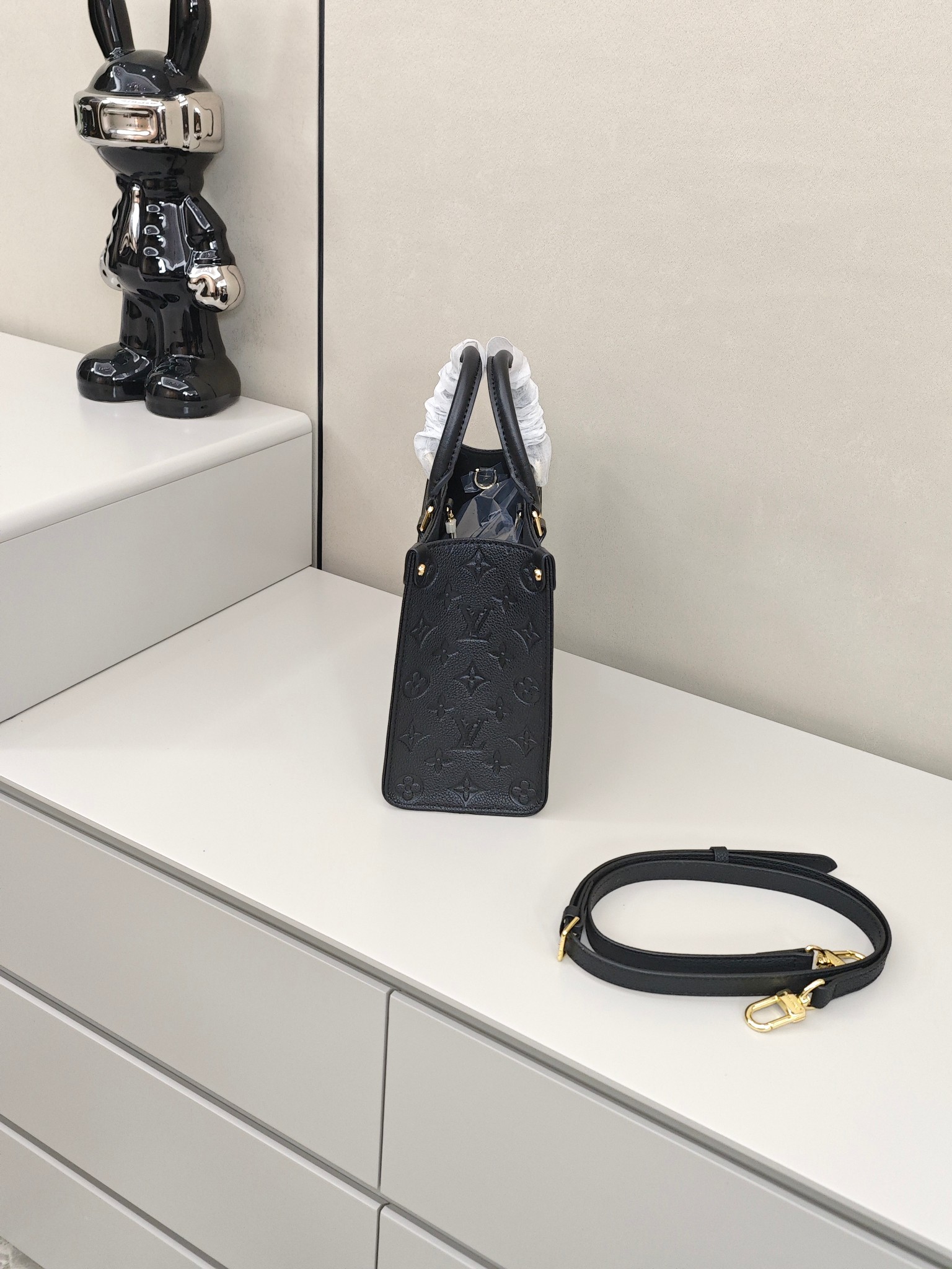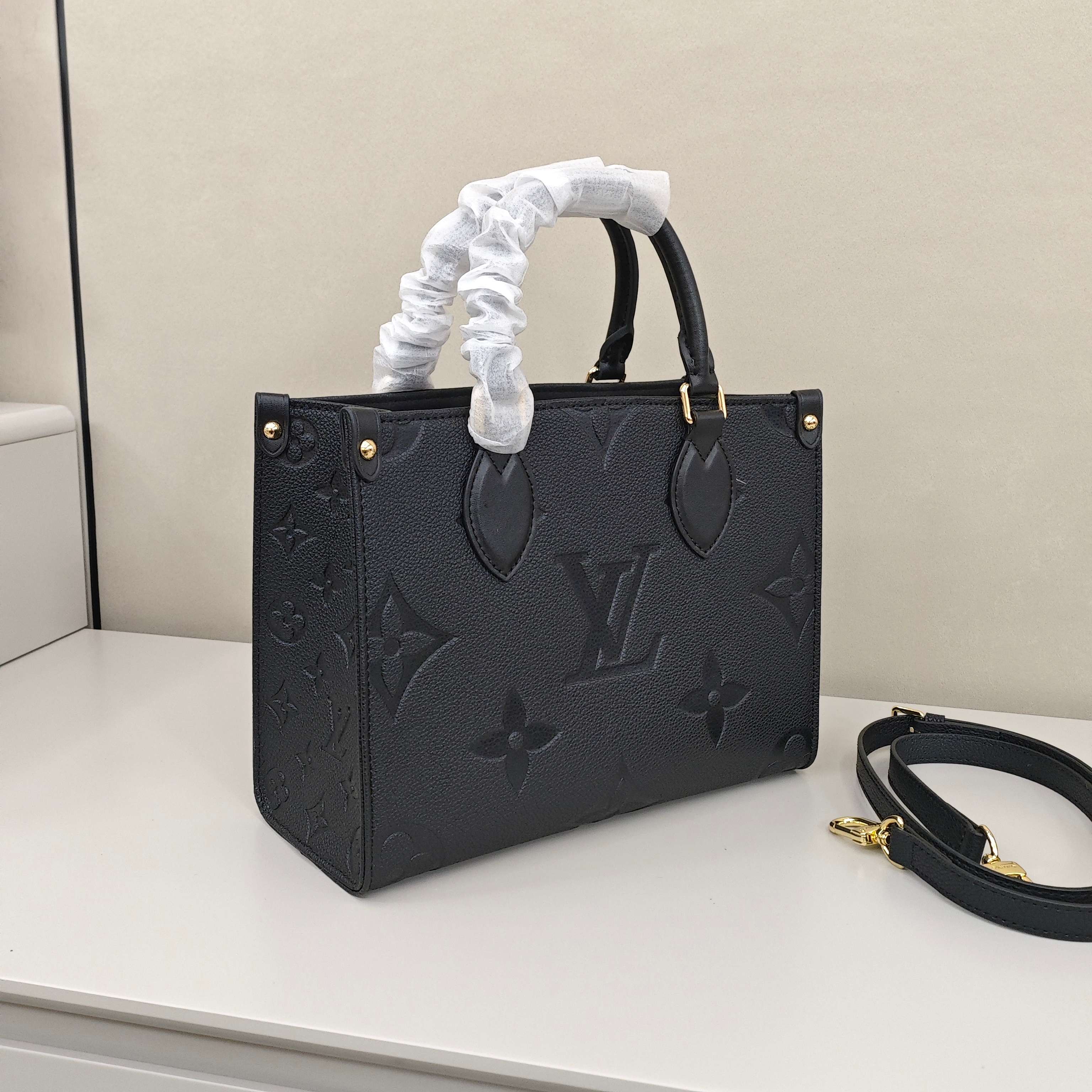 Lv onthego托特包💰280 尺寸:25×19×11.5cm 简介:开放式开合,内置拉链口袋,内部空间宽敞,可放下手机充电宝平板ipad等日常随身物品,搭配可拆卸背带,可手提/斜挎背。