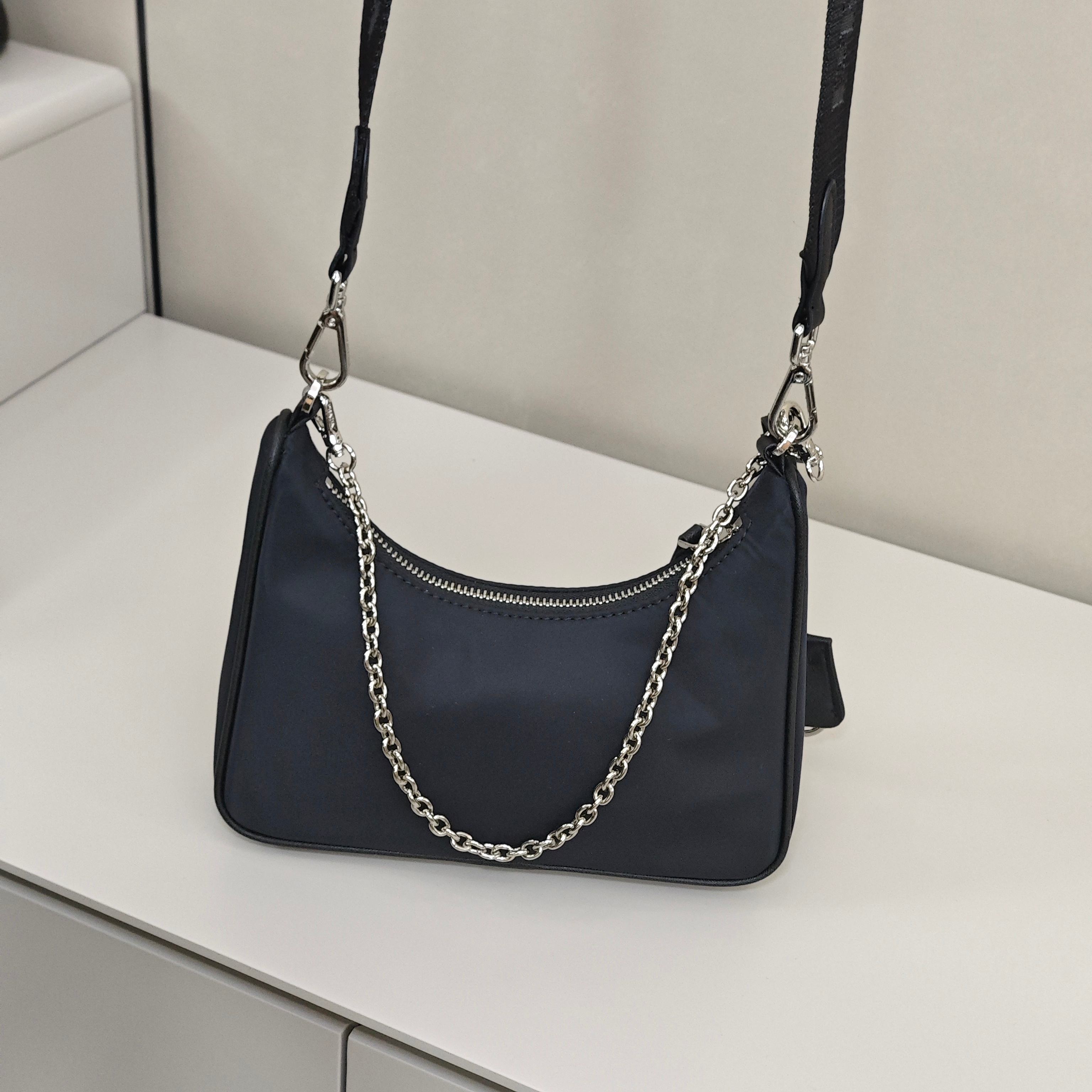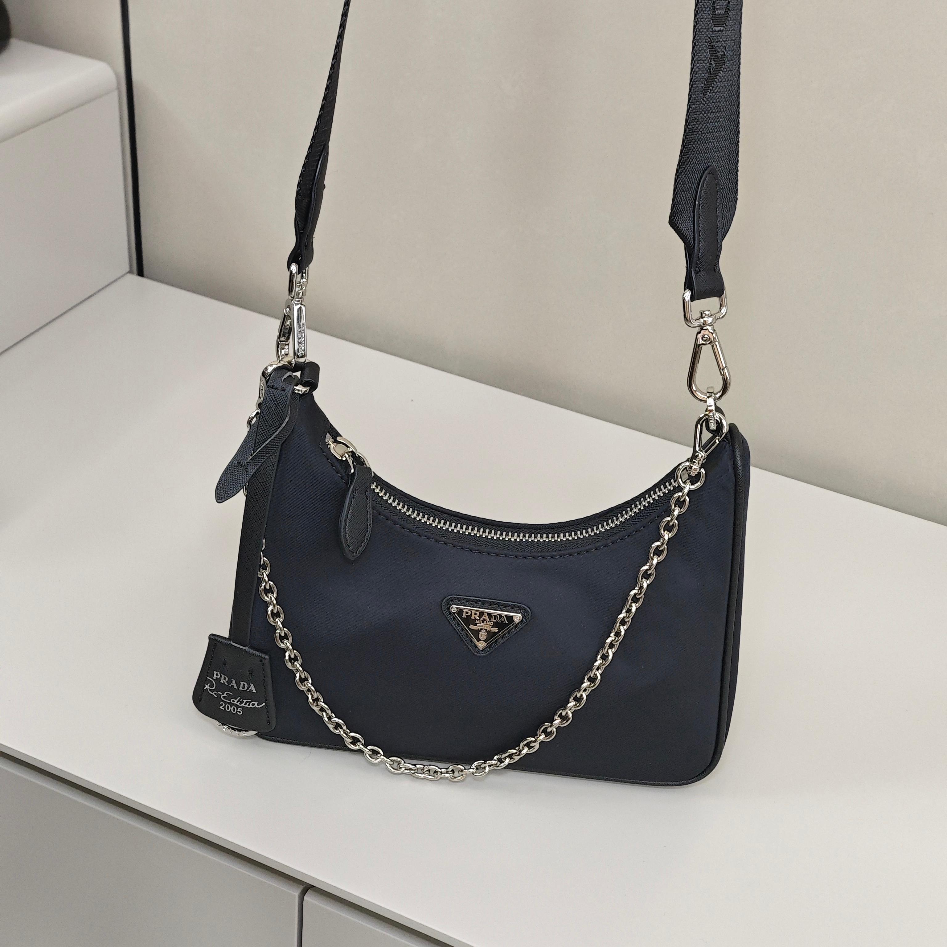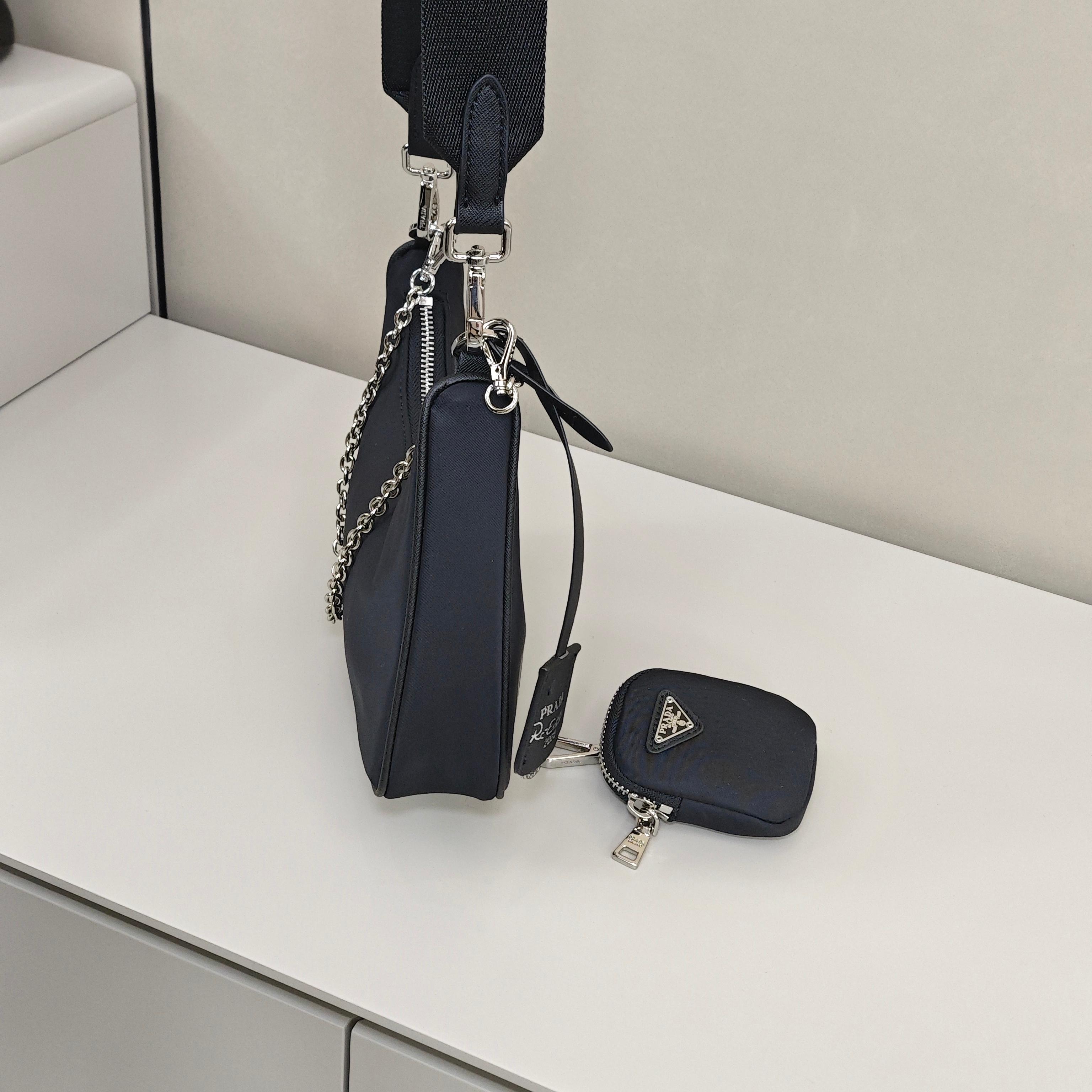 普拉达三合一斜挎包💰210 尺寸:22×18×6.5cm 简介:拉链式开合,内部空间可放下手机等日常随身物品,搭配可调节拆卸的长肩带及零钱小挂包,拥有很多搭配方式。