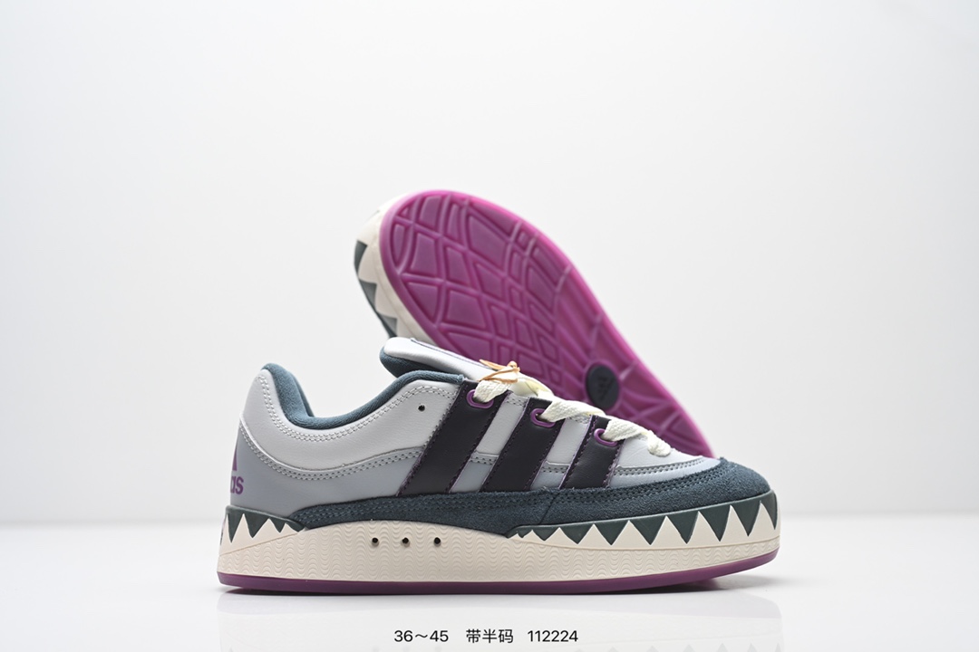 AD Adimatic Low 马蒂奇系列低帮复古鲨鱼面包鞋运动休闲滑板板鞋 整个鞋面由色彩艳丽的麂皮制成,搭配品牌标志性大尺寸三条纹 Logo,超宽鞋带作为鲜明特征,厚实的中底和耐用的橡胶外底为滑手们带来了良好的穿着体验。滑板运动作为都市街头运动的先驱,配色靓丽,夸张轮廓的 “面包鞋” ADIMATIC 自然成为了优选单品。对于经典细节的充分保留,让人们的目光瞬间就能集中到这双与众不同的 “Lo-Fi Style” 滑板鞋上。