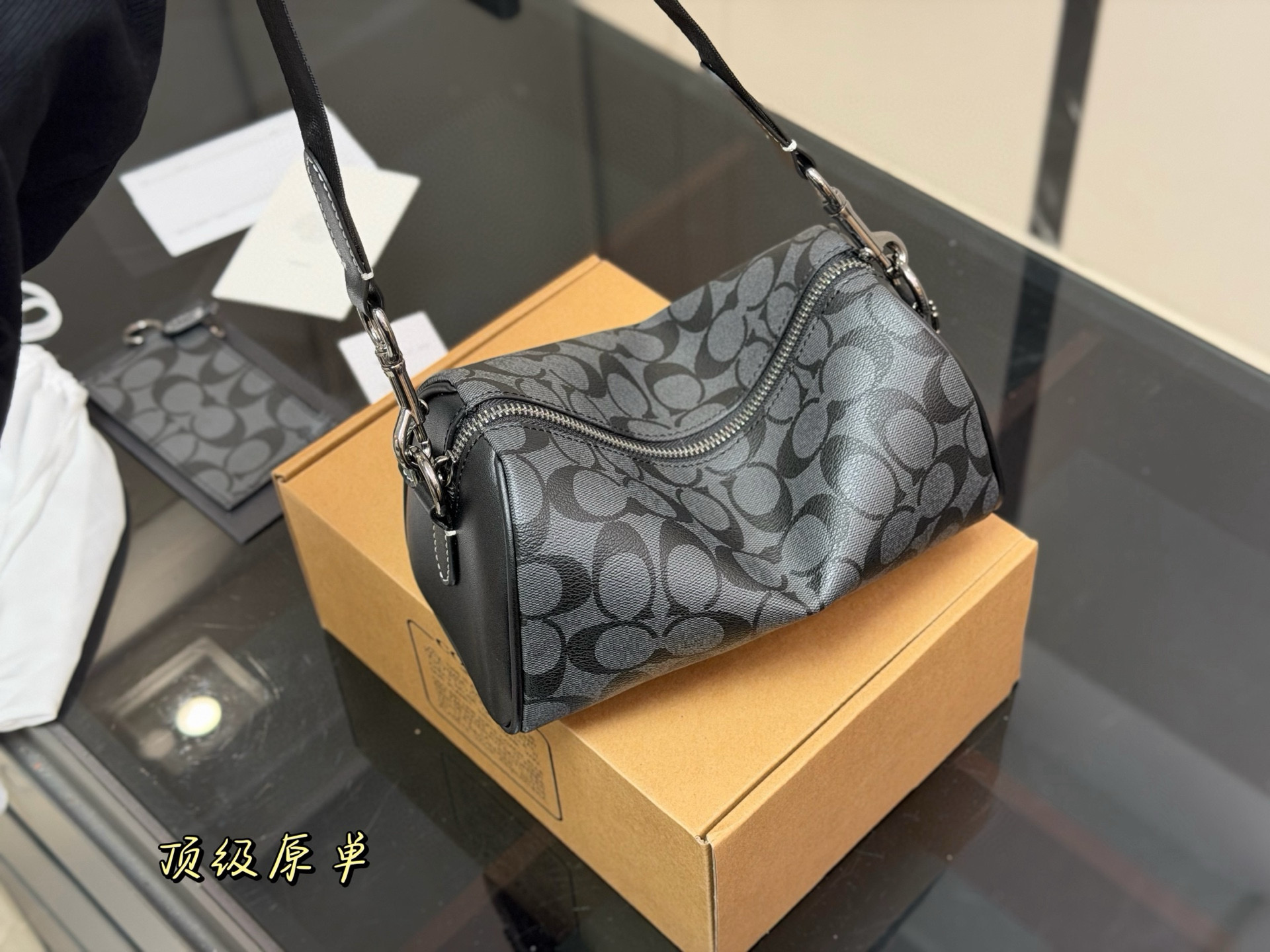 💰375 配飞机盒 coach axel老花圆筒包二合一单肩包男女通用斜 蔻驰axel老花圆筒包二合一单肩包男女通用斜挎包经典搭配工艺材质休闲百搭斜挎包采用精湛镶嵌细工,实物拍摄面料配送礼盒12x22cm