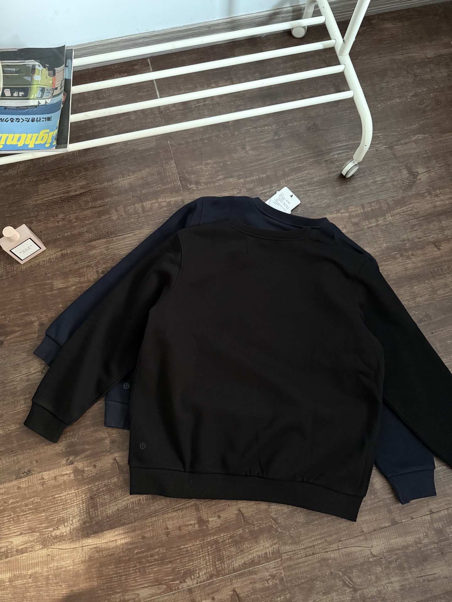 💰215 lululemon/露露乐檬 Steady State 学院风男士圆领奥立绒卫衣。 掌柜自留,秋冬加绒加厚! 官方在售,密码:LM3FV9S。 宁波代工厂的纯原订单,从面料到辅料包装都是原的。 客供纯棉的面料,内里复核柔顺亲肤奥立绒, 非常的厚实保暖的同时,天然亲肤感像被云朵轻轻裹住; 3D高针高密织法+空气层蓬松结构,赋予立体支撑力, 胸前精致的刺绣字母,妥妥的英伦学院风。 日常活动毫无负担。双向弹力嵌入让拉伸回复率拉满,水洗不变形, 不管是搭牛仔裤还是运动裤,基础款的百搭属性都能轻松hold住, 把舒适与质感穿进每一天。 黑色,藏青色 两个颜色 尺码:M-XXL